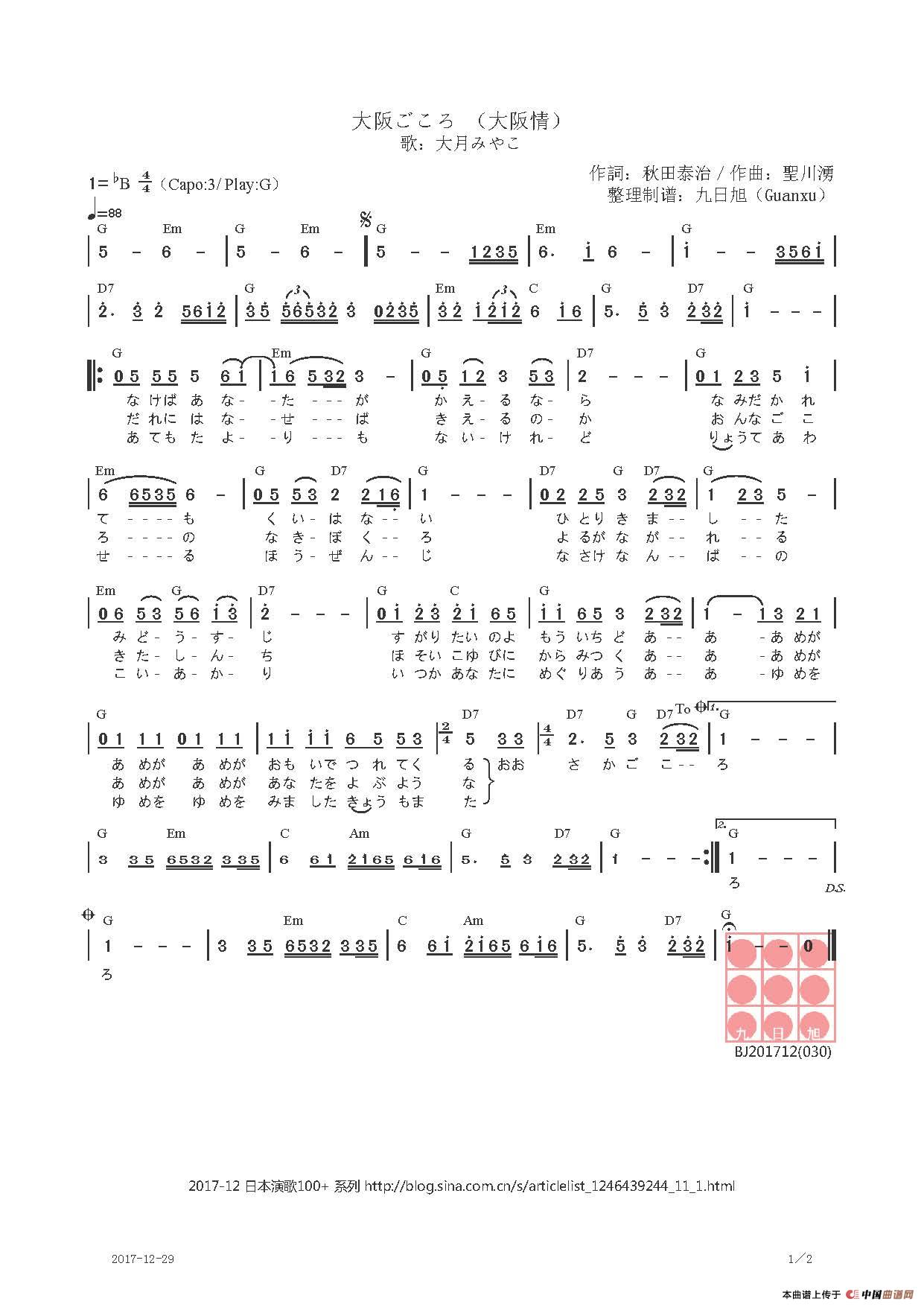 【日】大阪ごころ(大阪恋情)相关五线谱