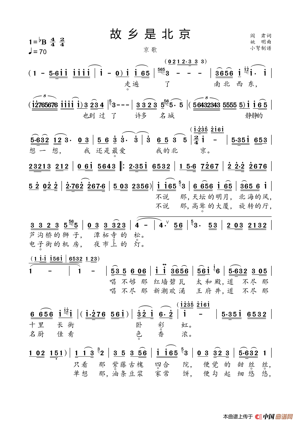 姚明曲谱推荐会飞的士兵故乡是北京窗花花对着你和我(电视剧《老耕外传》片尾曲)上门女婿爱更深(电视剧《龙凤乡的婚事》片尾曲)故乡是北京夜思(张能秋词 姚明曲)哥哥你大胆来俺家(电视剧《龙风乡的婚事》主题歌)瑶山春故乡是北京(混声合唱)前门情思大碗茶粉墨春秋(阎肃词 姚明曲)根(周保平词 姚明曲)梦北京 (京歌)我的中华(阎肃词 姚明曲)麻辣烫前门情思——大碗茶月牙儿(电视剧《乡村爱情交响曲》片尾歌)我的中华(京歌)善良是永恒的赞歌中国戏曲(舒张词 姚明曲)