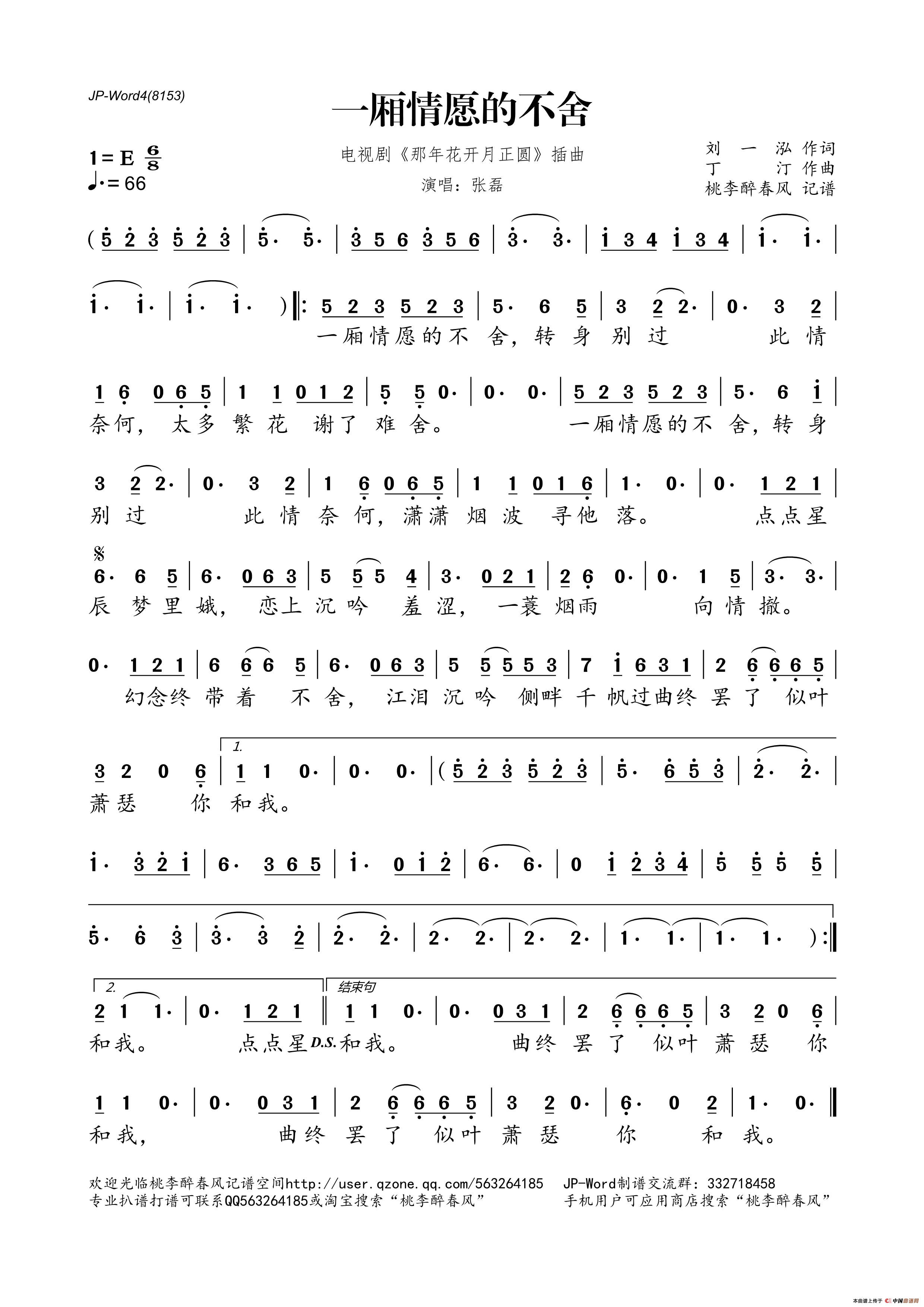 一厢情愿的不舍(电视剧《那年花开月正圆》插曲)相关五线谱
