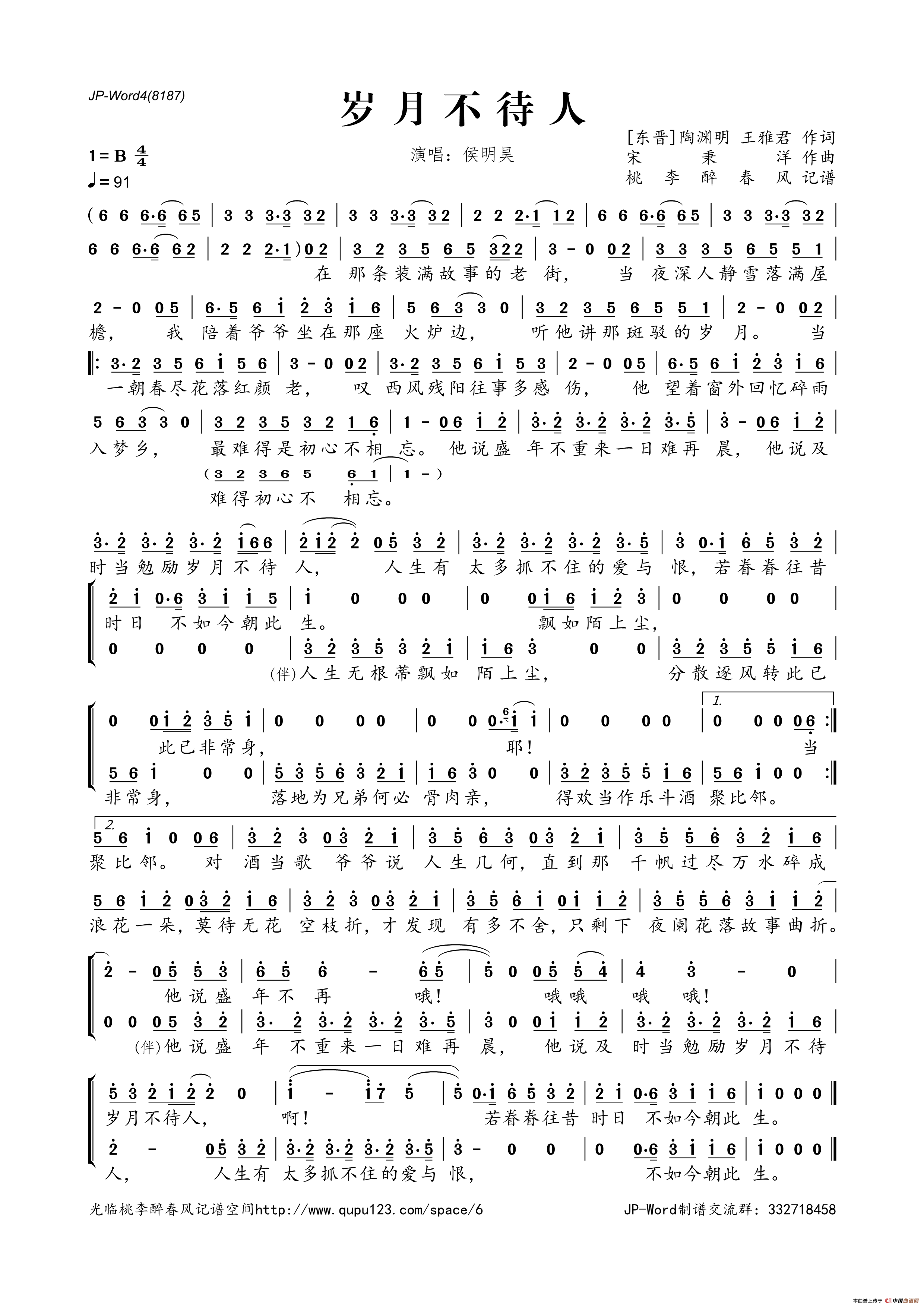岁月不待人相关五线谱
