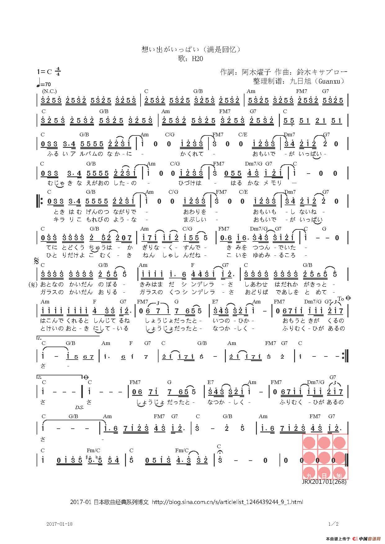 【日】想い出がいっぱい(满是回忆)相关五线谱