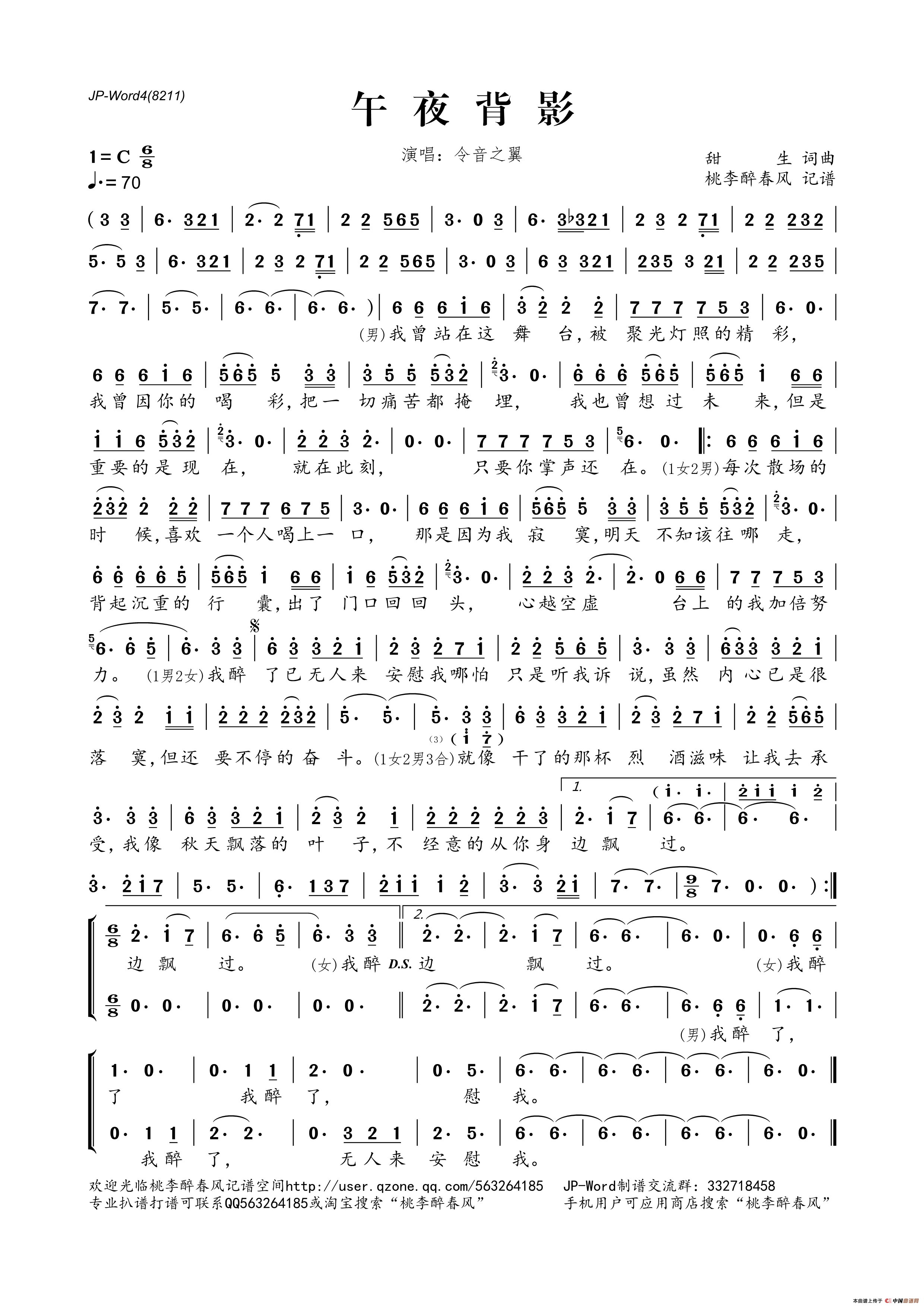 午夜背影相关五线谱
