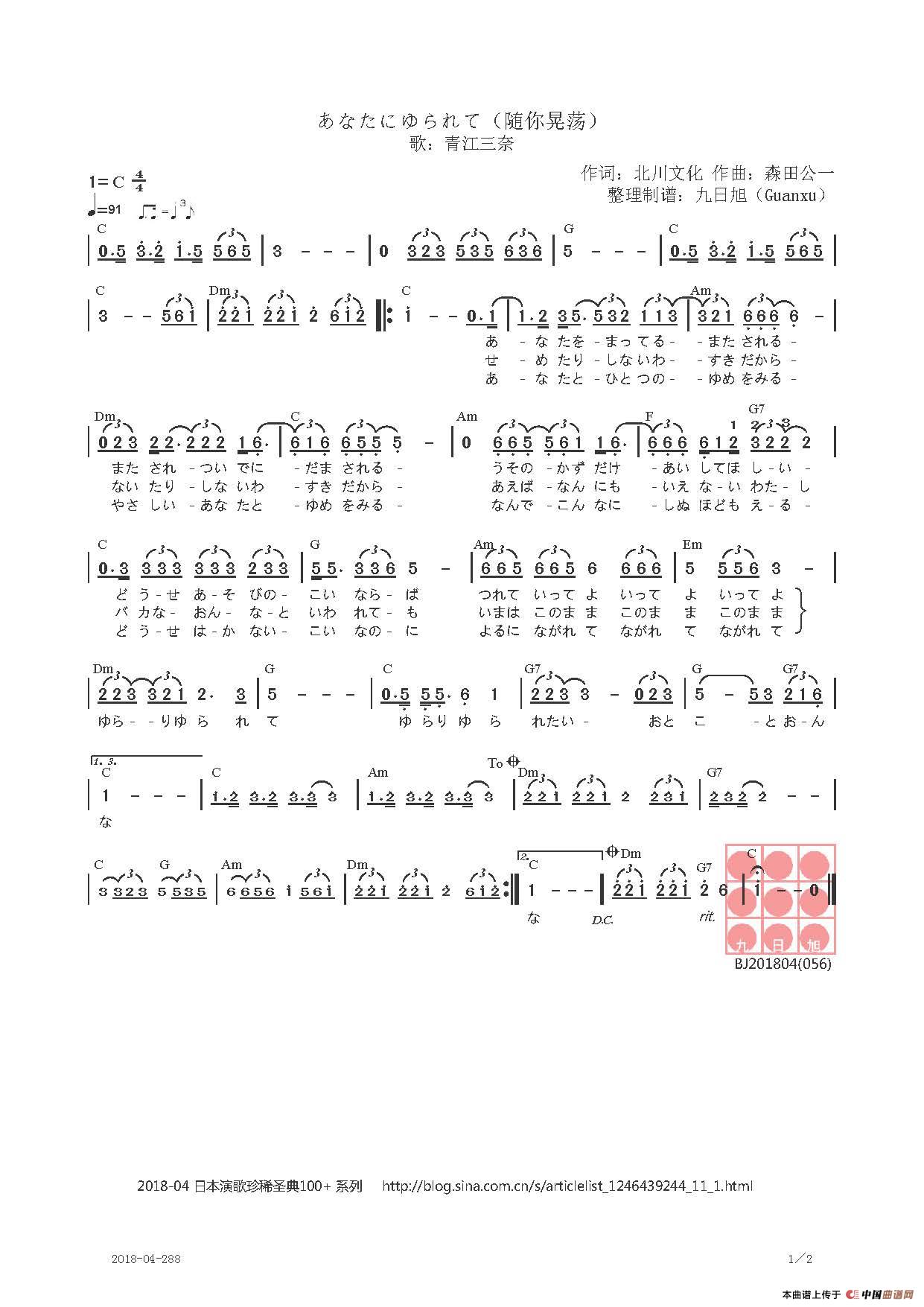 【日】あなたにゆられて(随你晃荡)相关五线谱