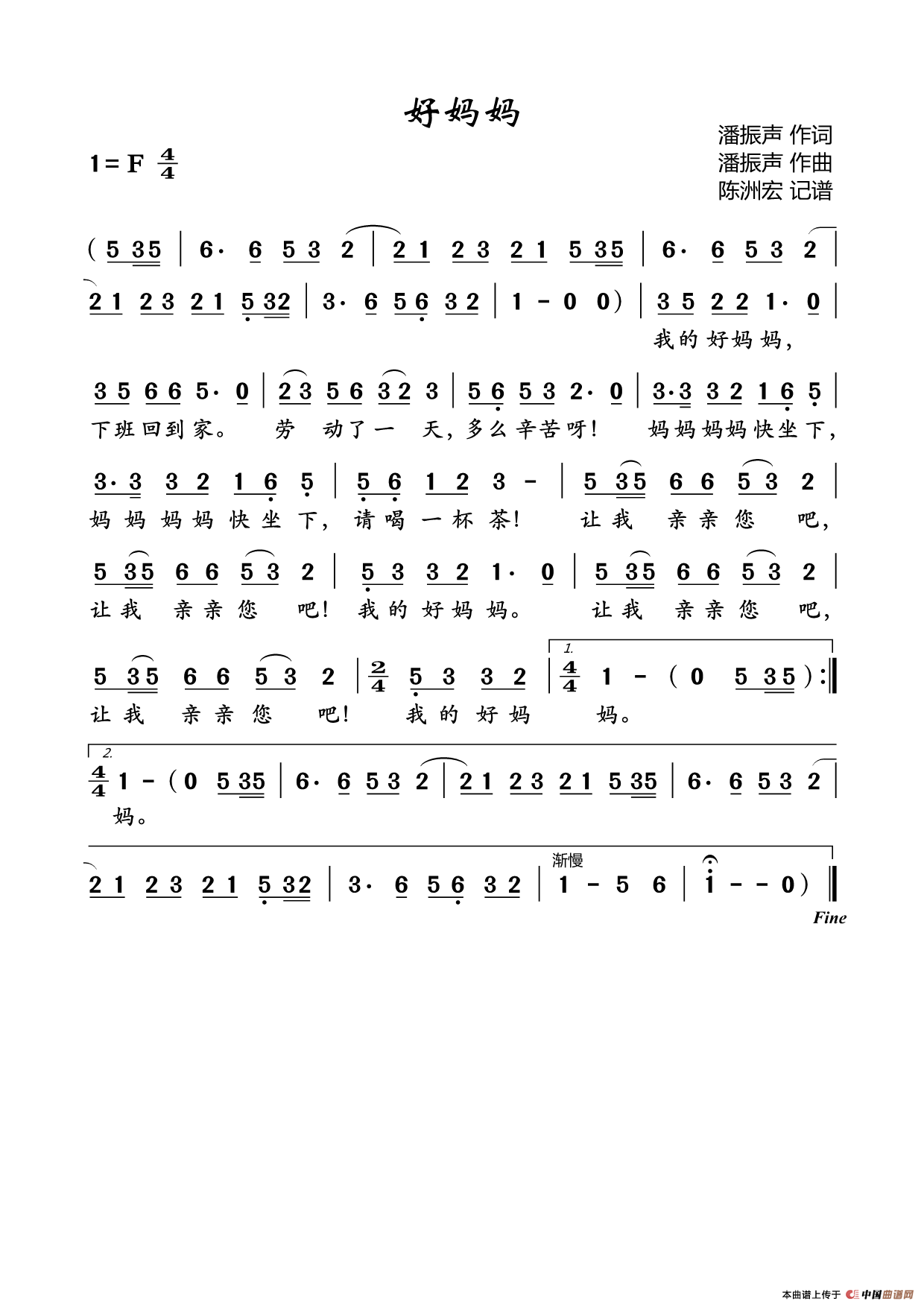潘振声曲谱推荐大海大,高山高(合唱)跨世纪的新一代(李幼容词 潘振声曲)奥运会金牌多云岭是我家(合唱)啊!年轻的姑娘春天在哪里(简和谱)荷花开得更灿烂丰收的秋天一分钱(线简谱混排版)嘀哩嘀哩(五线谱+简谱)我来当老师幸福的花朵(二胡曲谱)小鸭子(线简谱混排版)我给太阳唱支歌(五线谱)大马大马告诉我(对唱歌曲)共产党最懂庄稼人的心开火车(柯岩词 潘振声曲)我有一双勤劳的手(正谱)嘀哩嘀哩(教材歌曲即兴配弹)红太阳照山河(少儿歌曲)
