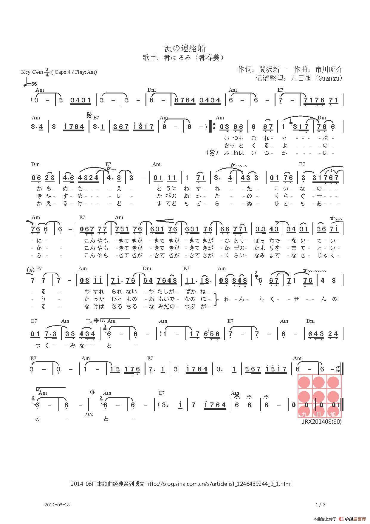 市川昭介曲谱推荐【日】忍ぶ雨【日】いろいろありました(一箩一箩 人间事)[日]いろいろありました【日】札幌ふたりづれ(札幌两人相伴而行)【日】大阪しぐれ(大阪时雨)【日】ふたりの灯(两个人的明灯)[日]浮草(浮萍人生)(ぐらし)【日】夫婦みち (夫妻之道 )【日】雨に咲く花 (雨中盛开的花)【日】別れてひとり (分手后一个人)[日]涙の連絡船(泪洒摆渡船)命运青红灯【日】女のグラス(女人的酒杯)【日】金沢の夜【日】みちのく風の宿 (陆奥 风之宿)【日】雪中花能不能留住你[日]大阪しぐれ (大阪时雨)レモン月夜の散歩道(檸檬月夜下的散歩道路)大阪时雨