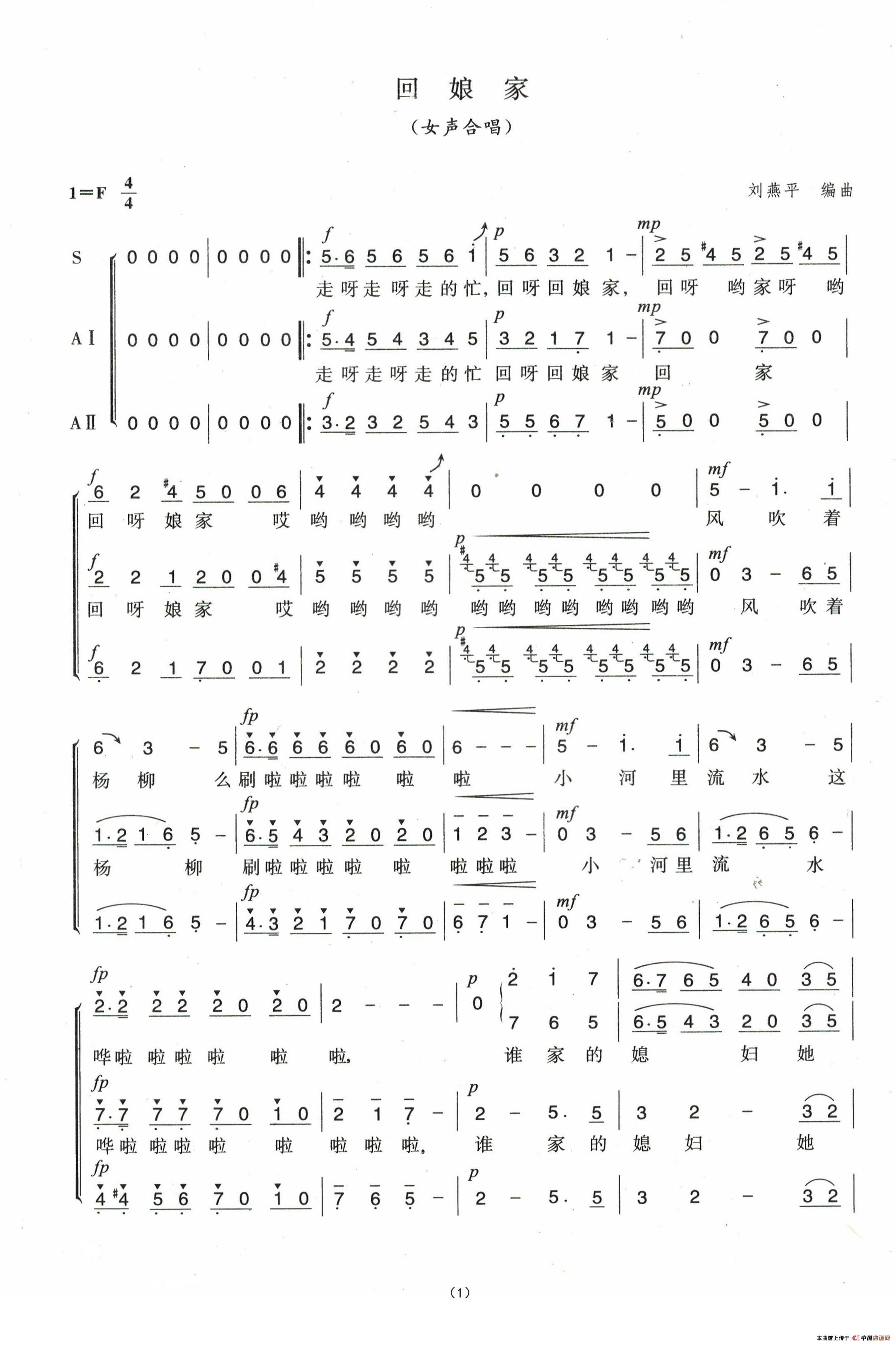 回娘家(女声合唱)相关五线谱