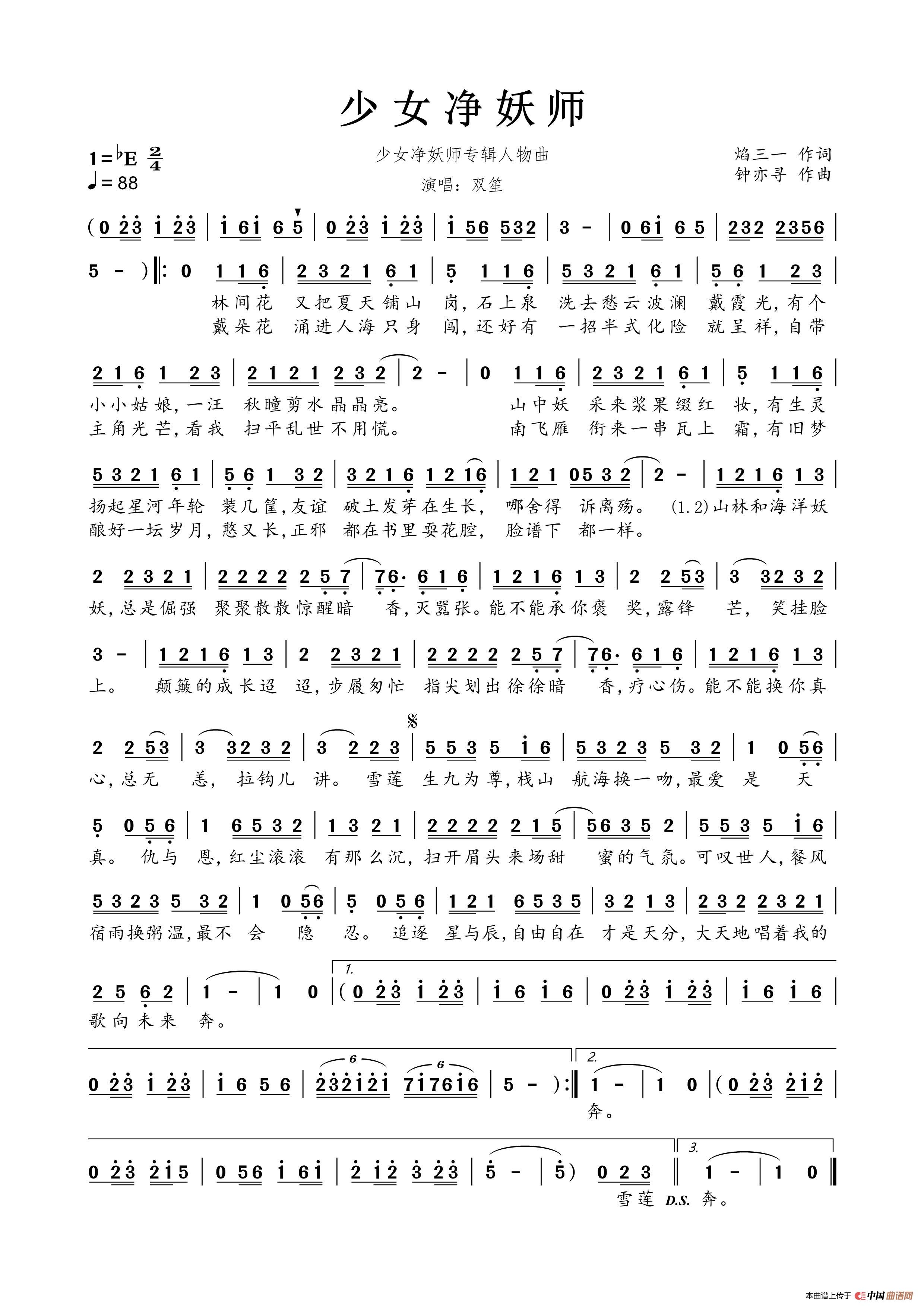 少女净妖师(少女净妖师专辑人物曲)相关五线谱