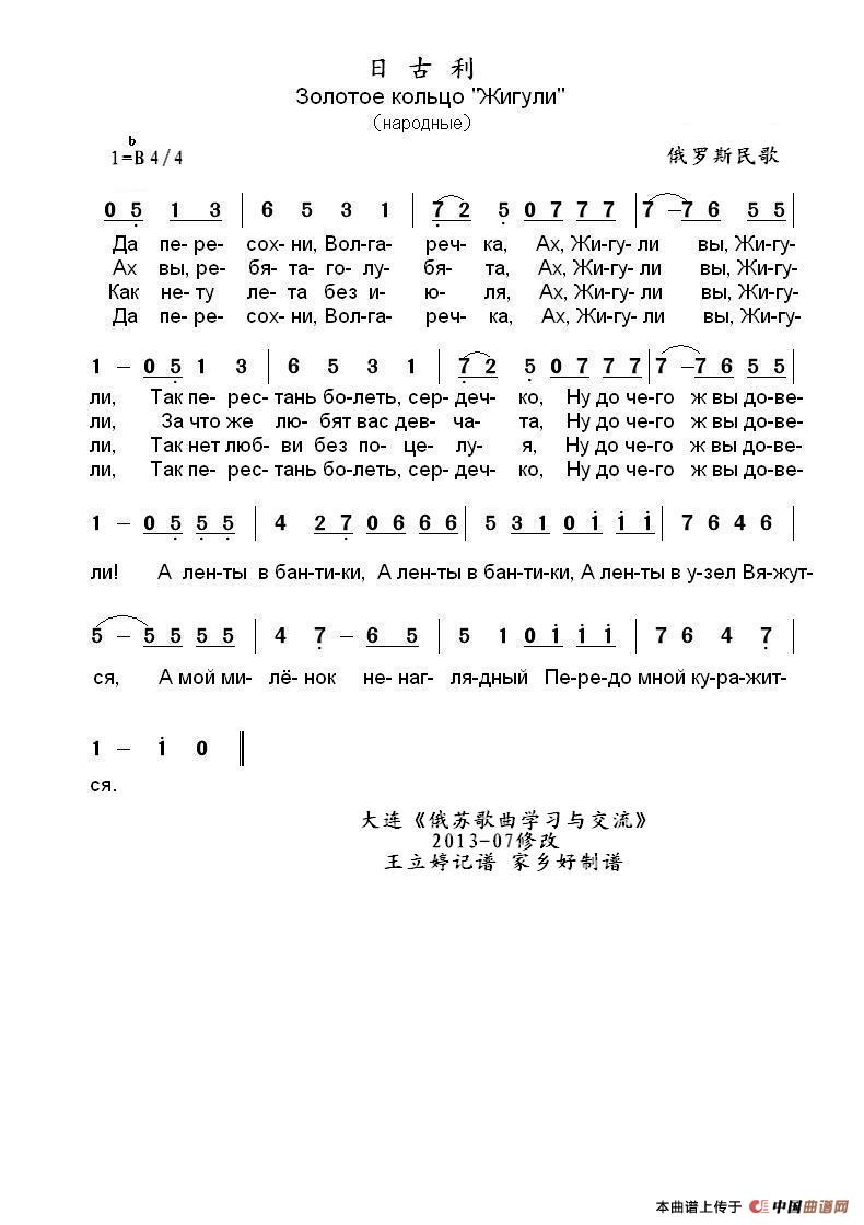 俄罗斯民歌曲谱推荐