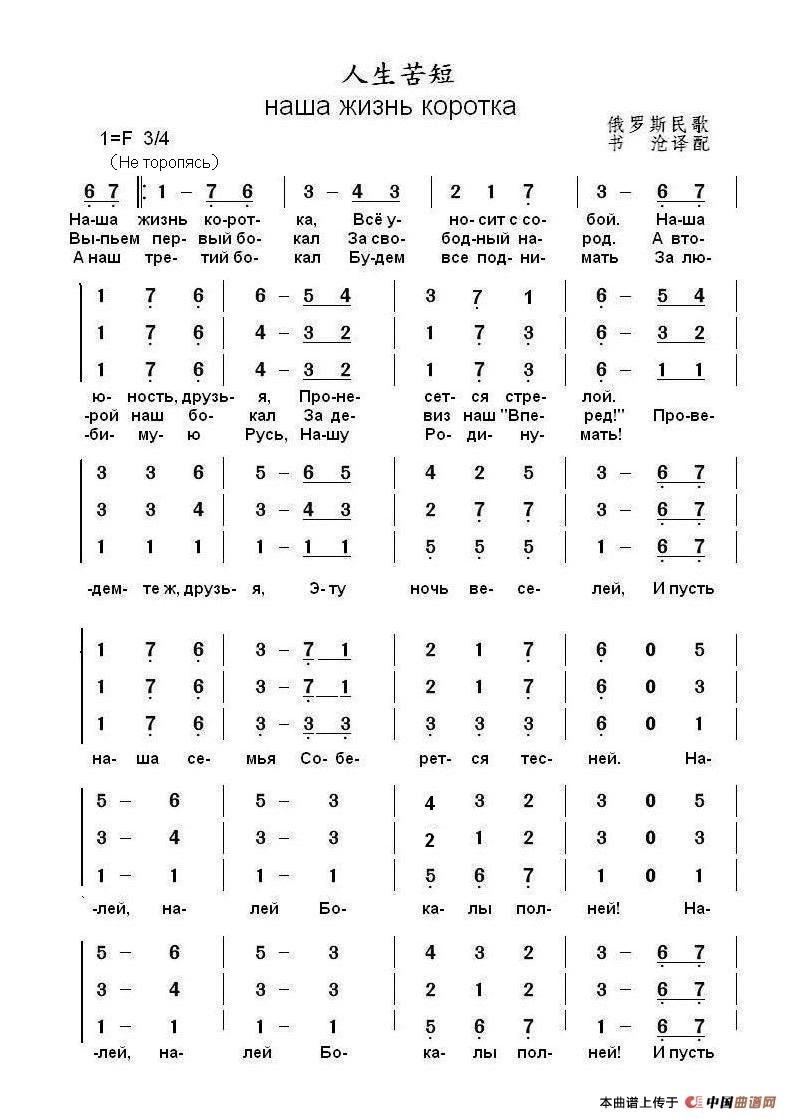 - 为何太阳早早离去ЗАЧЕМ СОЛНЦЕ РАНО ПАЛО(中俄简谱)