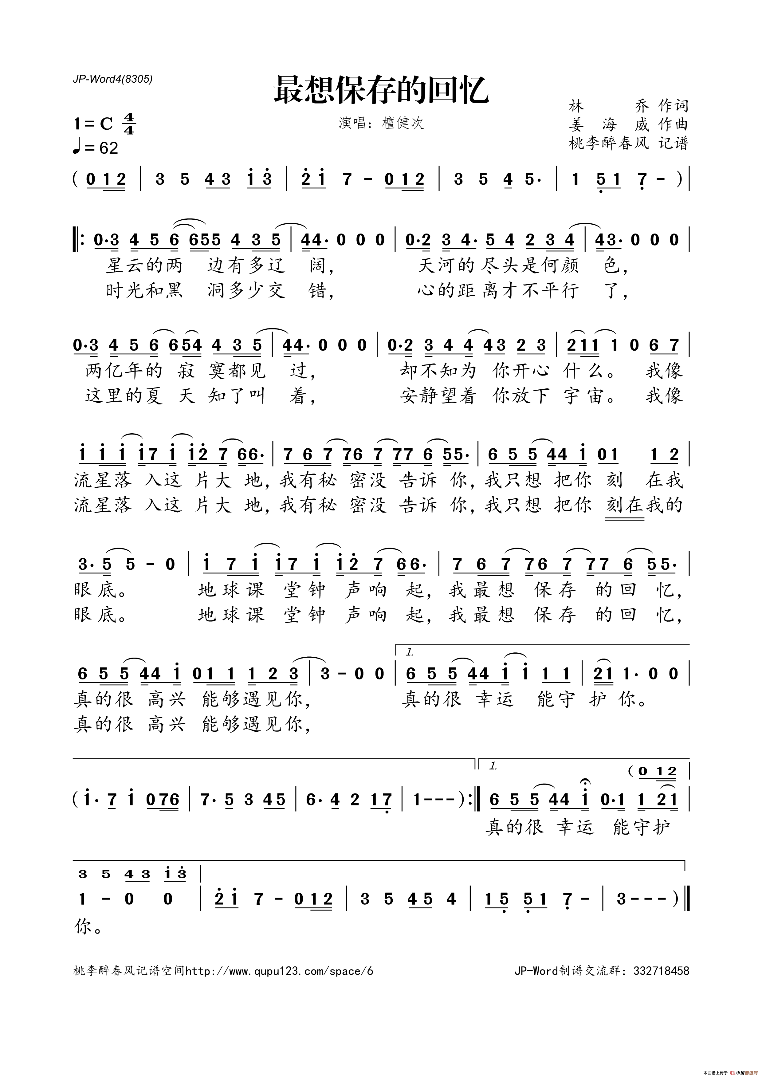 姜海威曲谱推荐