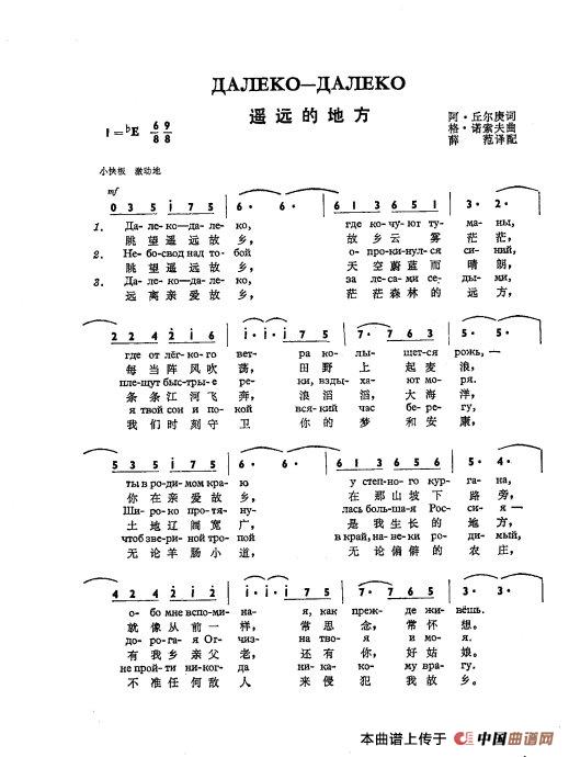 遥远的地方Далеко - далеко(中俄简谱)相关五线谱