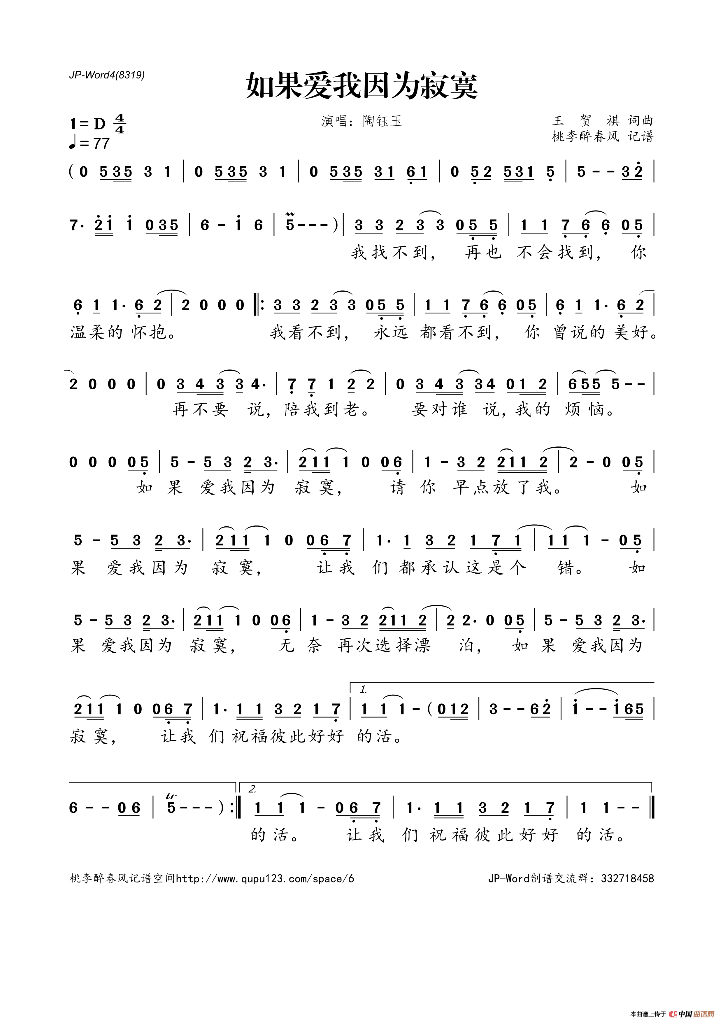 如果爱我因为寂寞相关五线谱