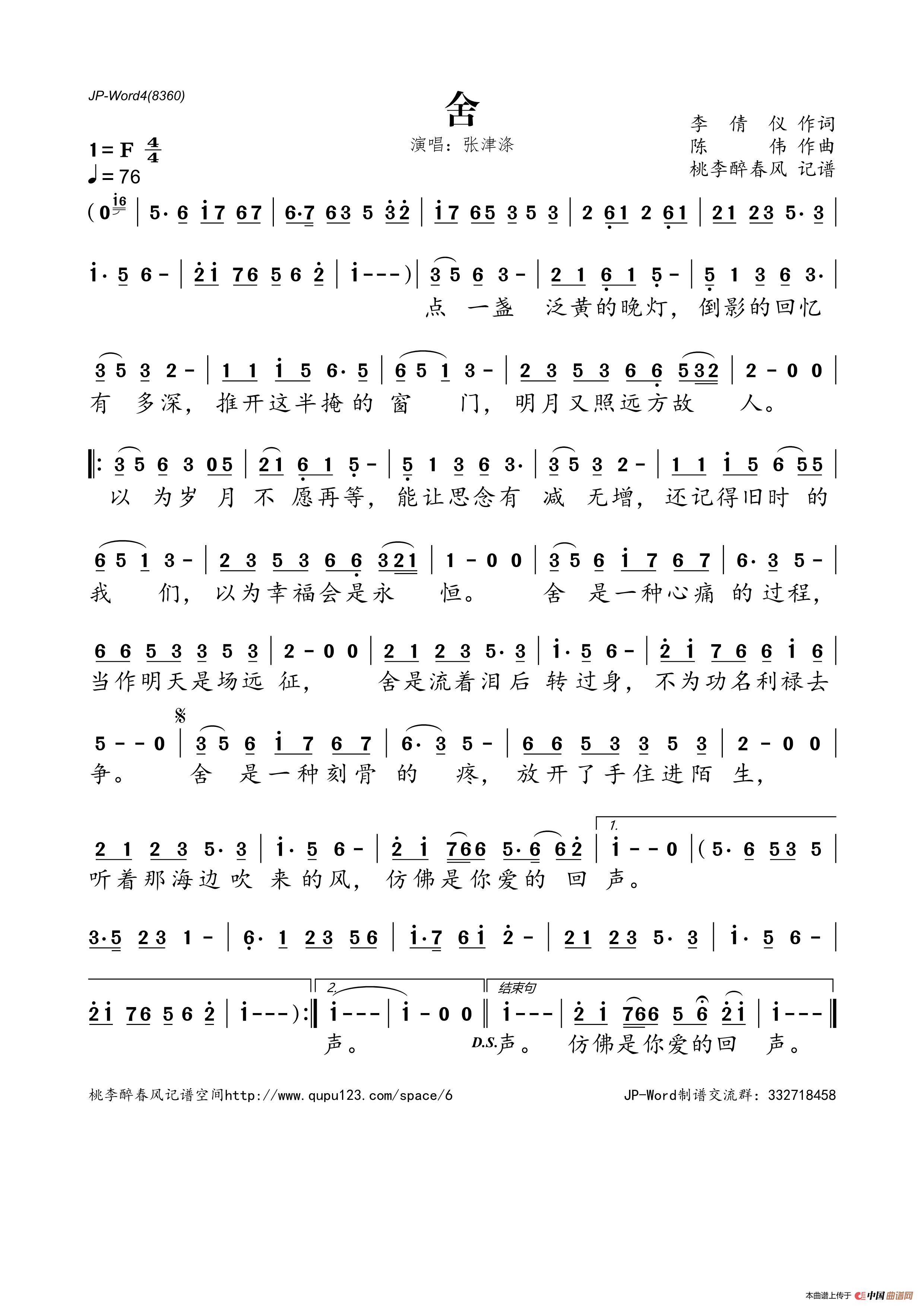 陈伟曲谱推荐陪你走一程人到中年(玉镯儿词 陈伟曲)想你的时候我不哭(夏敢若何词 陈伟曲)美人窝毛主席语录揪心听心哥已不再是当年的哥请你告诉我(陈伟 词曲)太懂事的女人没人心疼一生的思念我在这里你在哪里我是真的真的爱你别说爱你是我一厢情愿相遇宁波湾想你就唱你的歌(郭冬青词 陈伟曲)女人如书(张津涤)念念不忘红尘红尘永相伴(邓堪心词 陈伟曲)除了心痛我一无所有