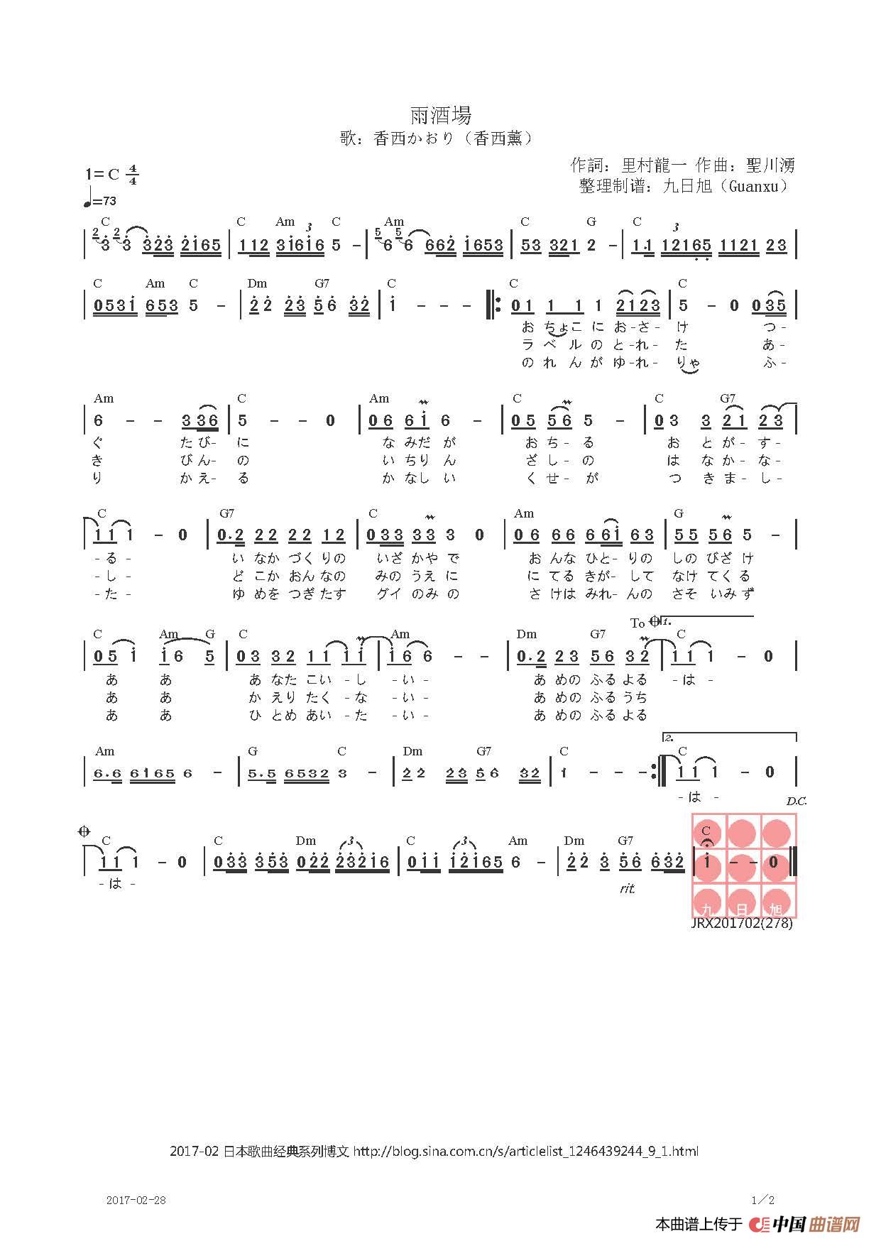 【日】雨酒場相关五线谱