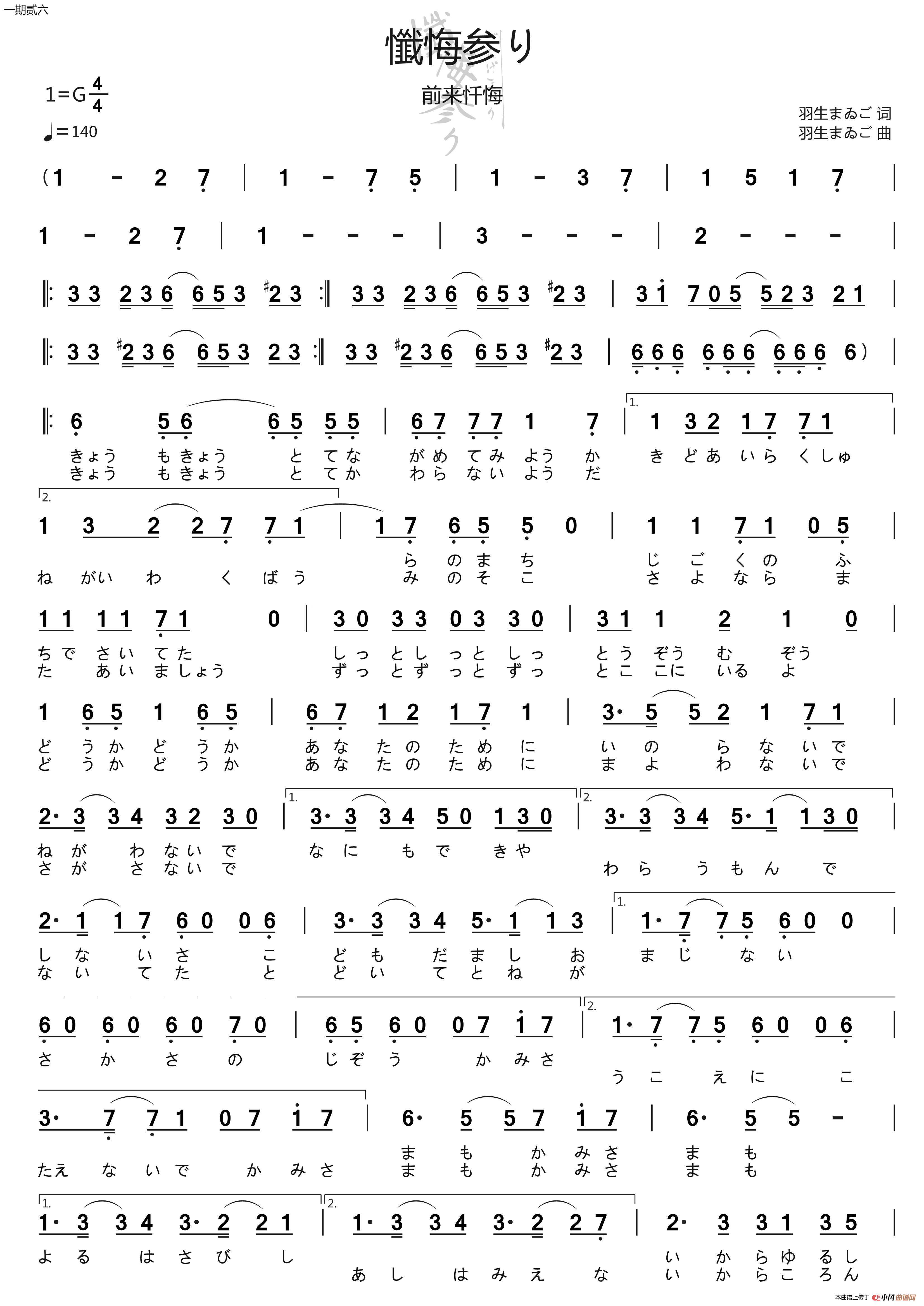 [日]懺悔参り(前来忏悔)相关五线谱