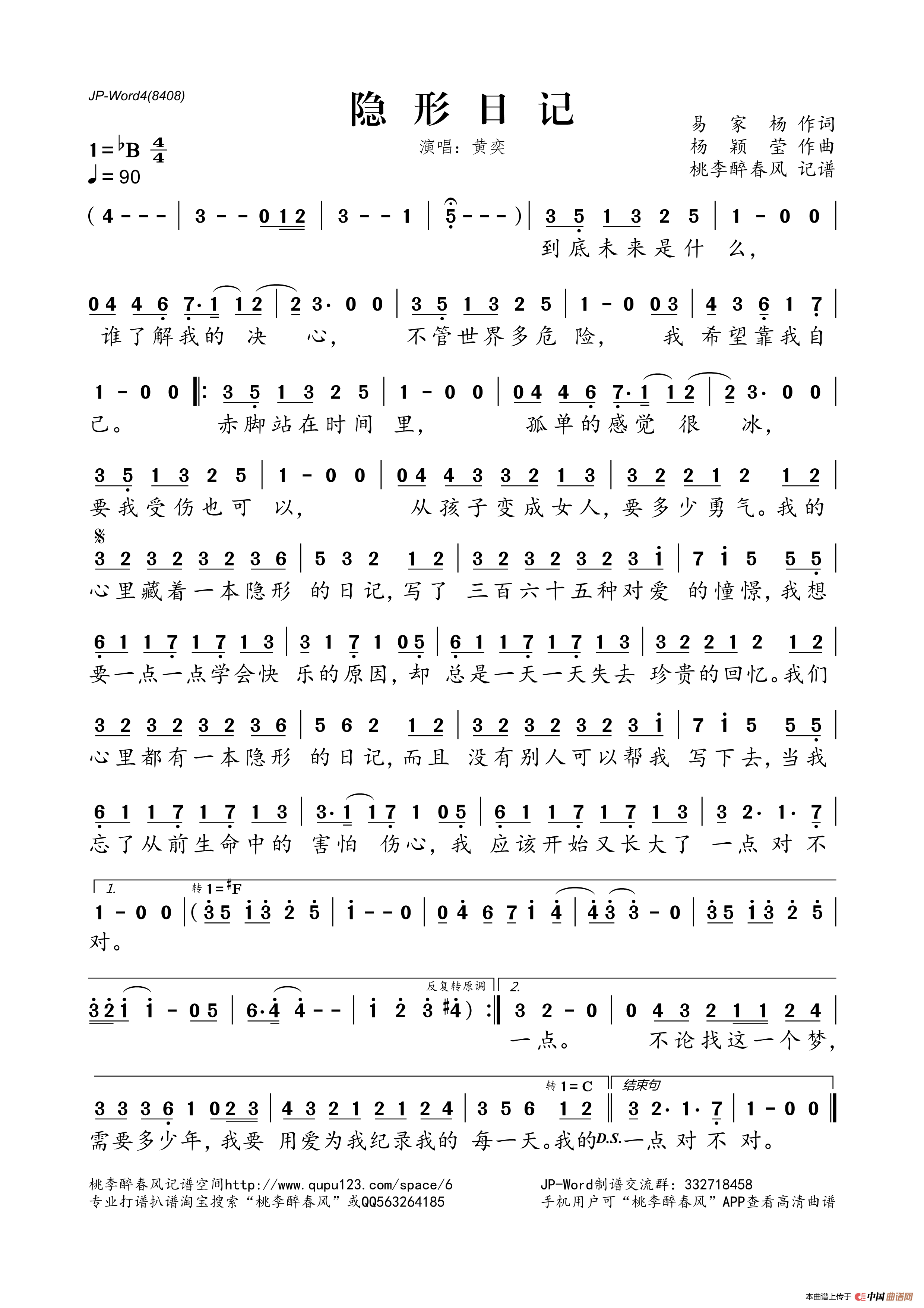 隐形日记相关五线谱