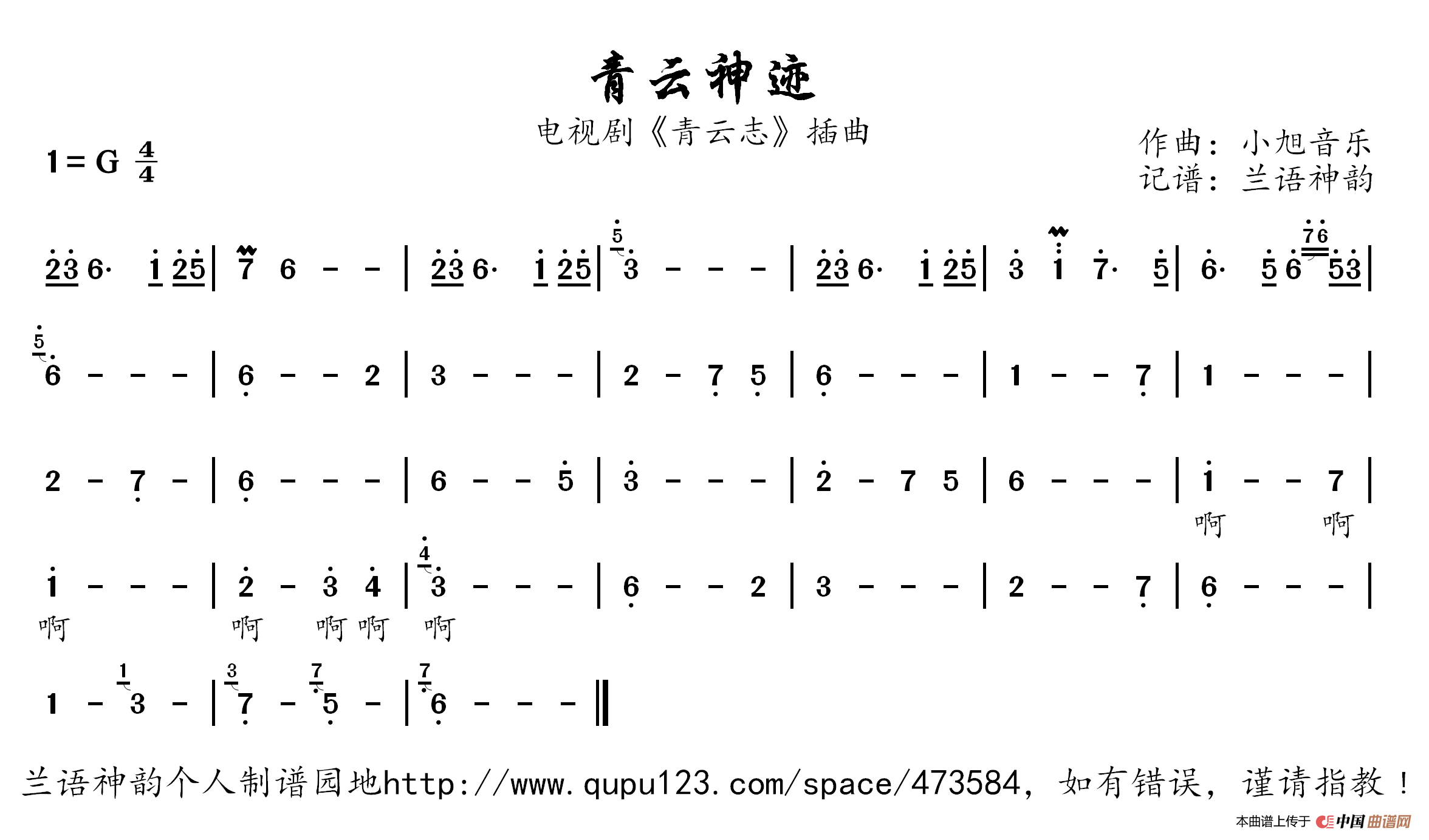 小旭音乐曲谱推荐燕殇思无痕(电视剧《青云志》插曲)凡心七脉会武(电视剧《青云志》插曲)神武醉相思天涯策马三世缘(小旭音乐词曲)神武雨霖铃倾城猎国(网游《猎国》游戏主题曲)仙凡劫剑影流风只为兄弟战今生笑傲江湖路胭脂泪(《笑傲江湖》歌曲)天下第一招笑傲万世飞仙奇缘(游戏《剑仙》主题曲)江沉晚吟时梦想明月曲((网游《梦想世界》主题曲))剑指风流