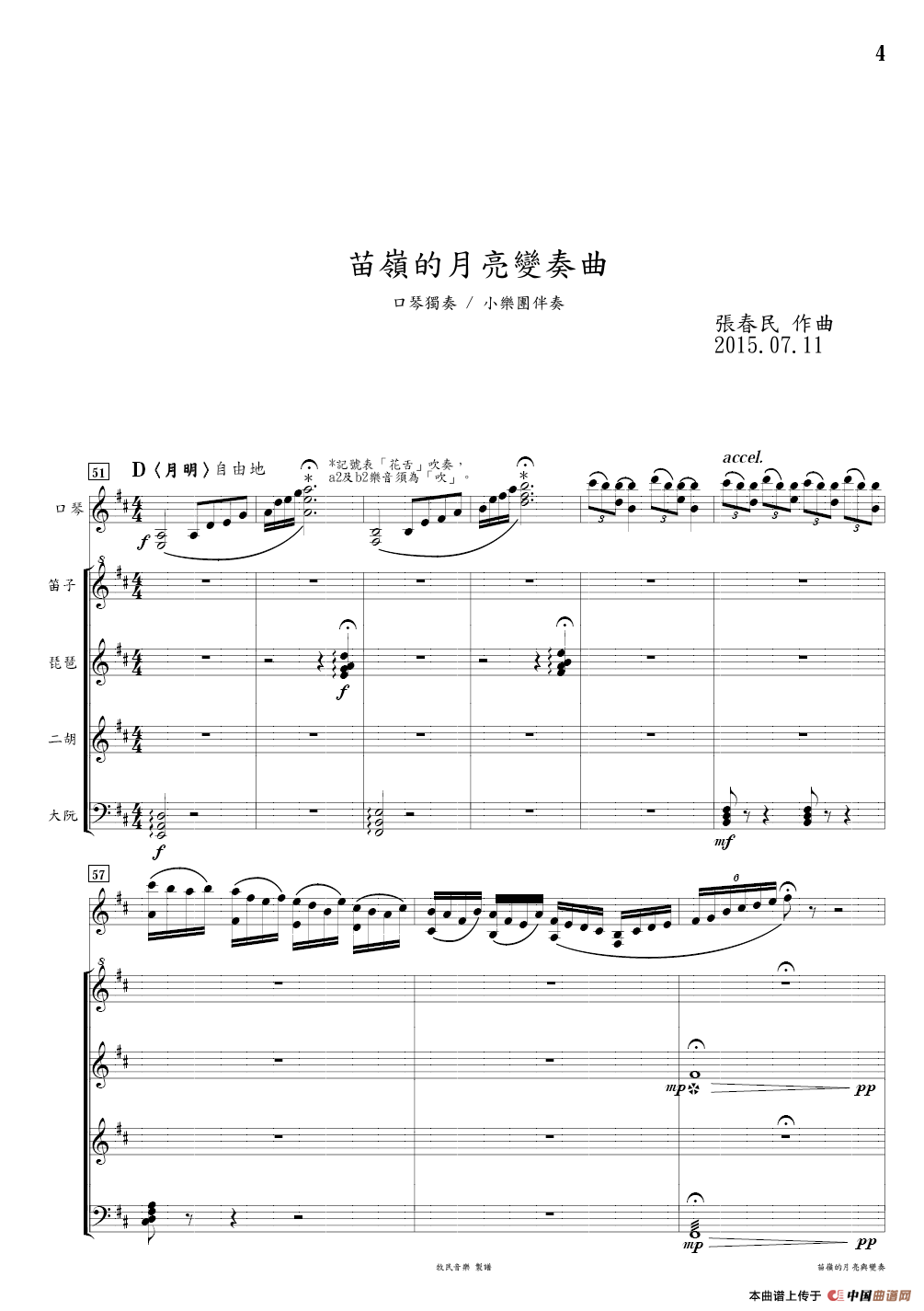 苗岭的月亮变奏曲(口琴+民族小乐团)相关五线谱