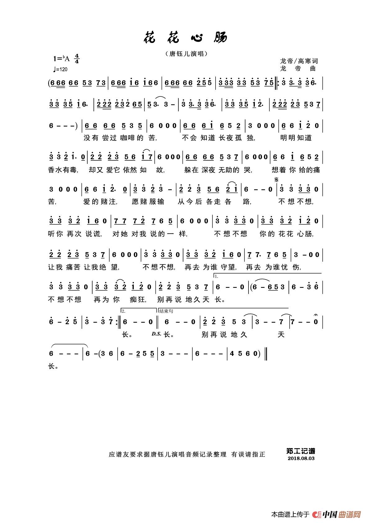 花花心肠相关五线谱