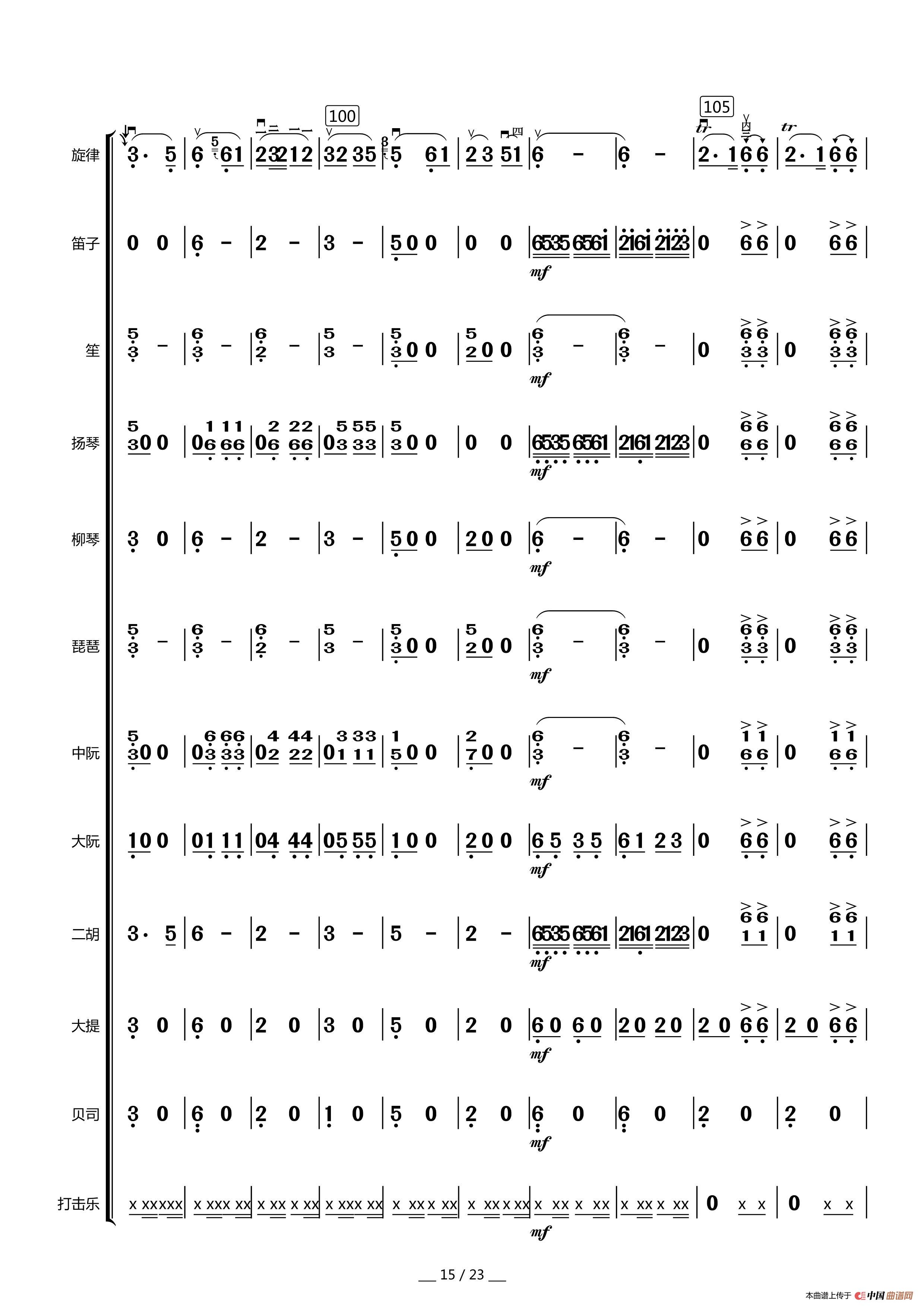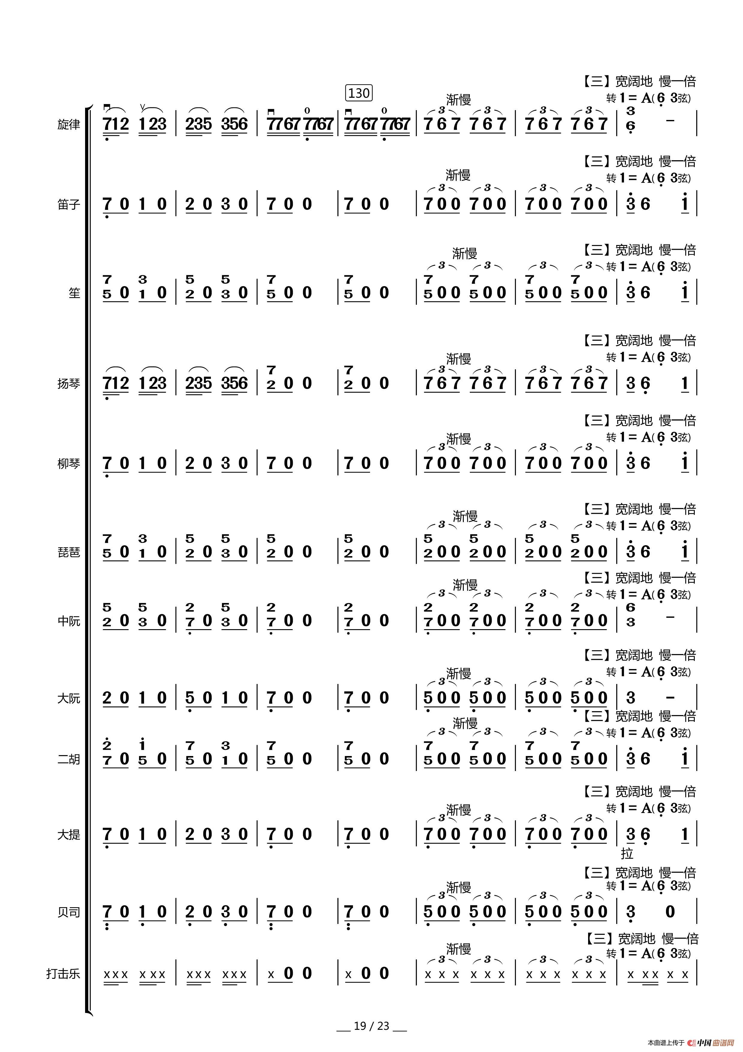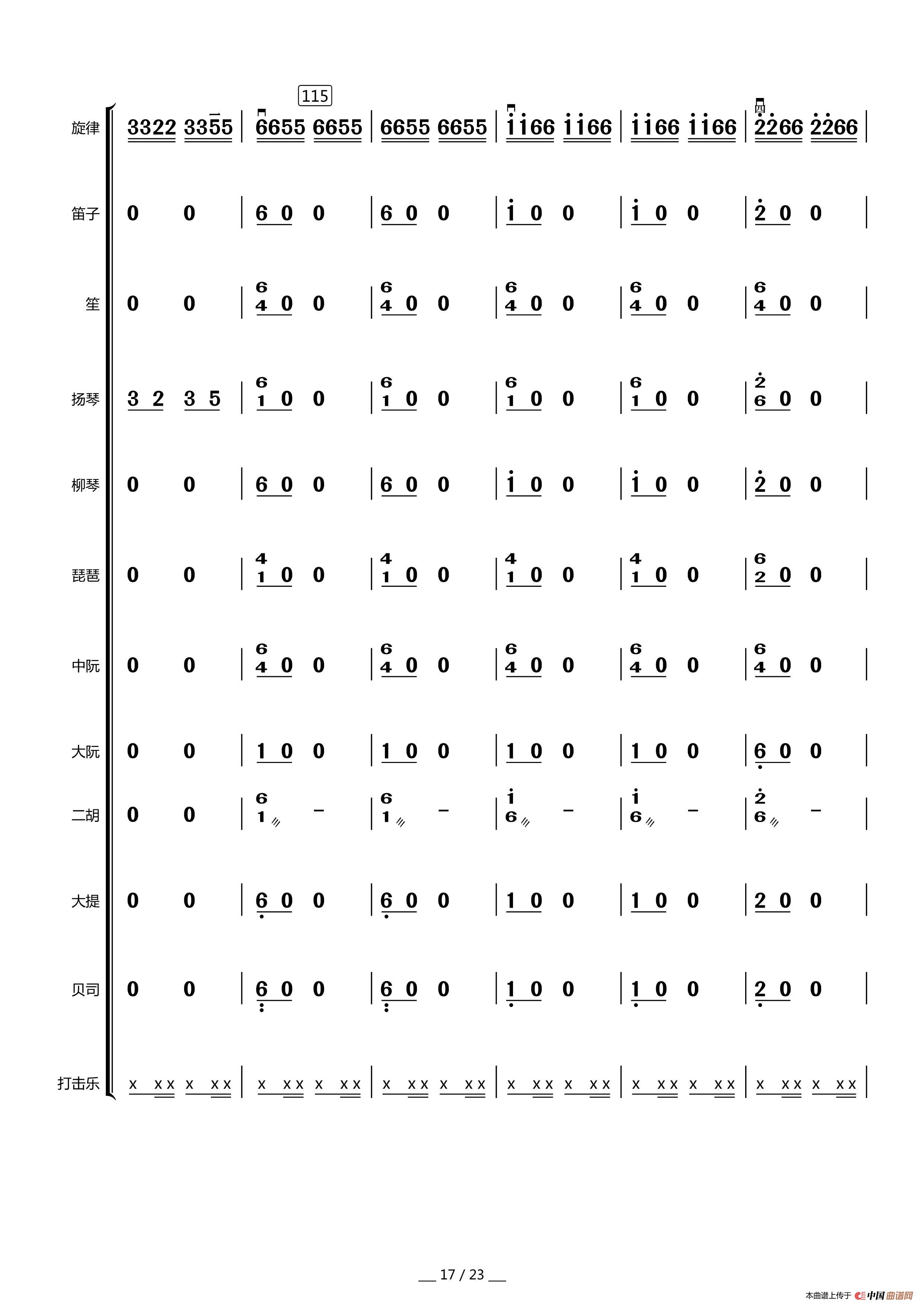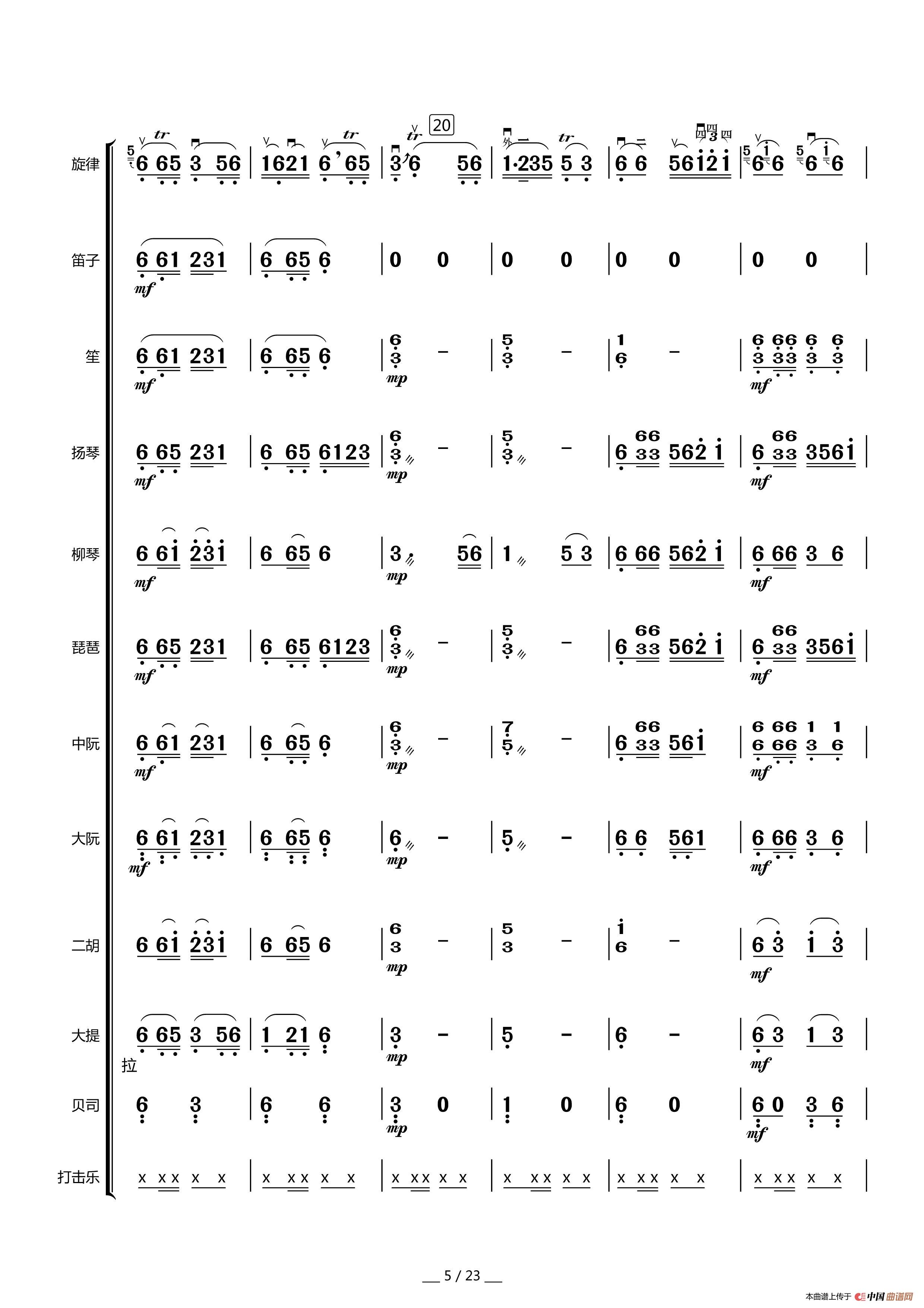 赞歌(中胡独奏总谱)相关五线谱