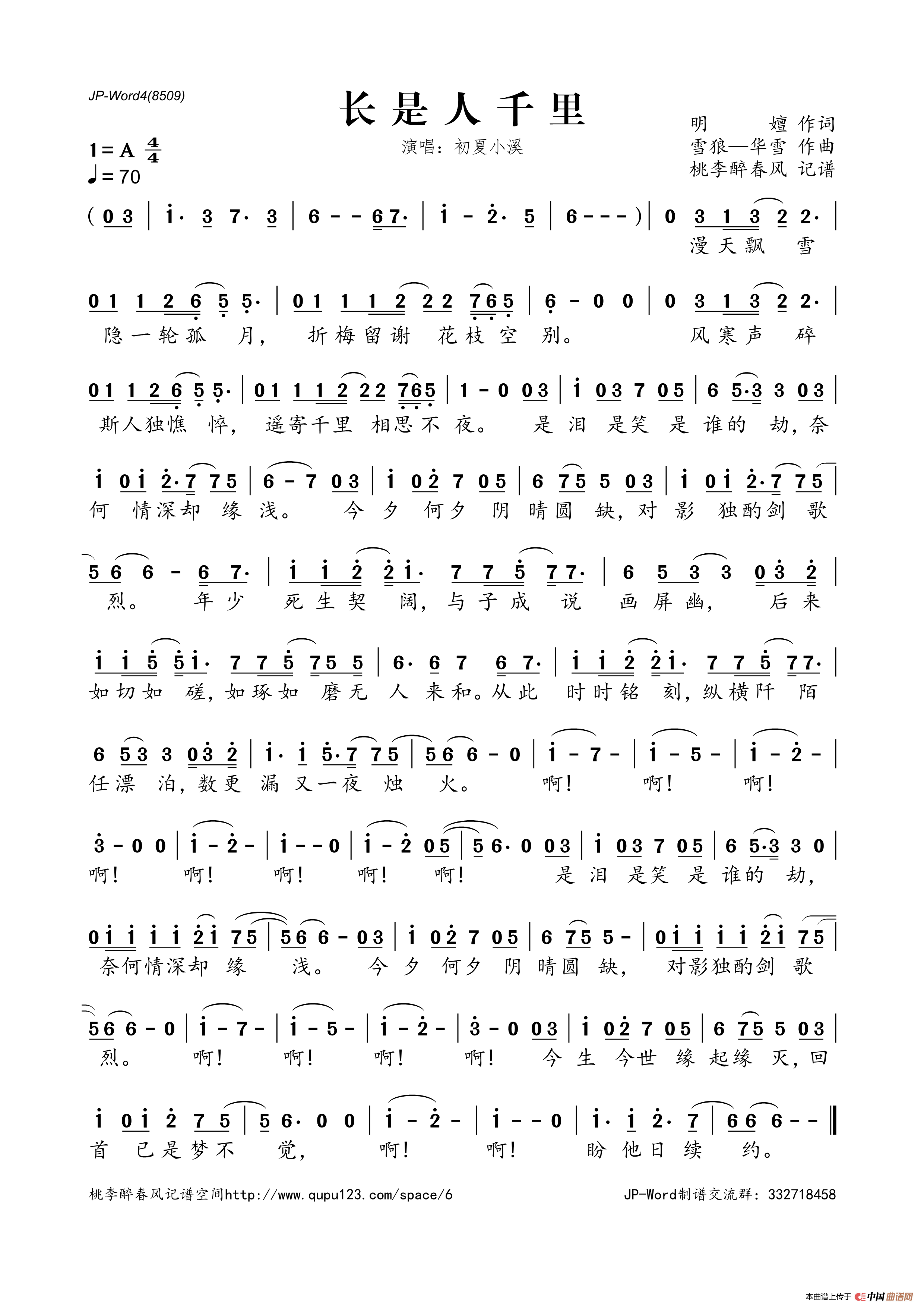 长是人千里相关五线谱