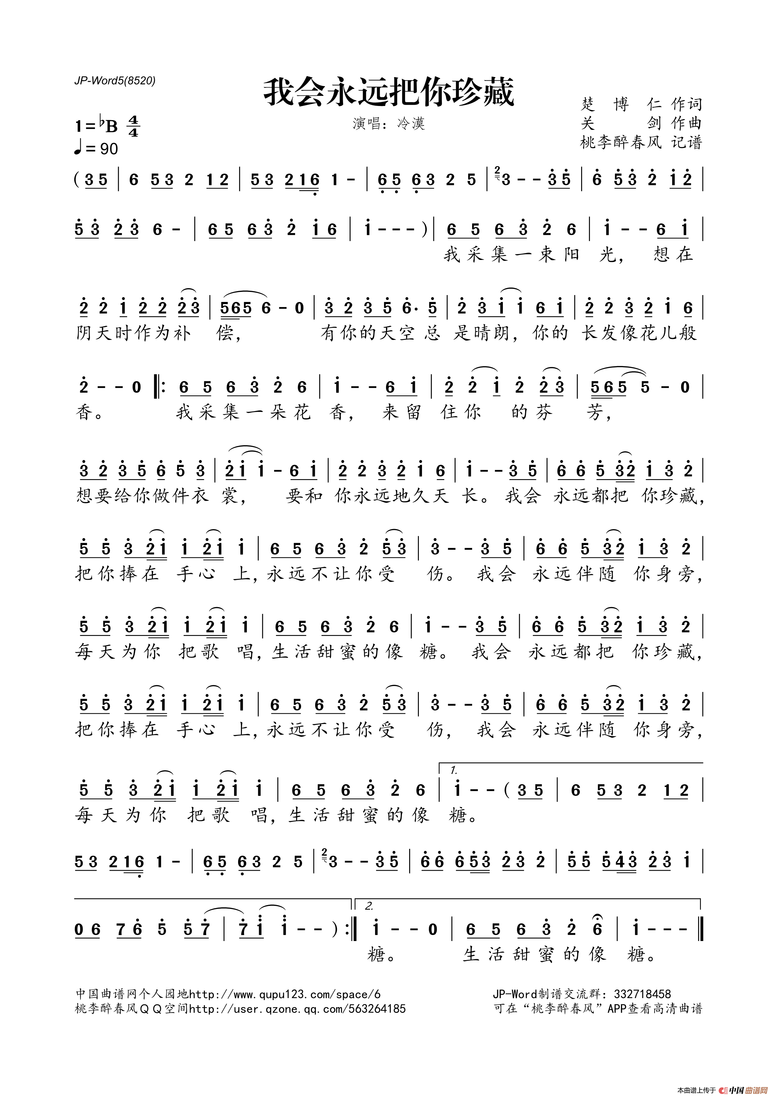 我会永远把你珍藏相关五线谱