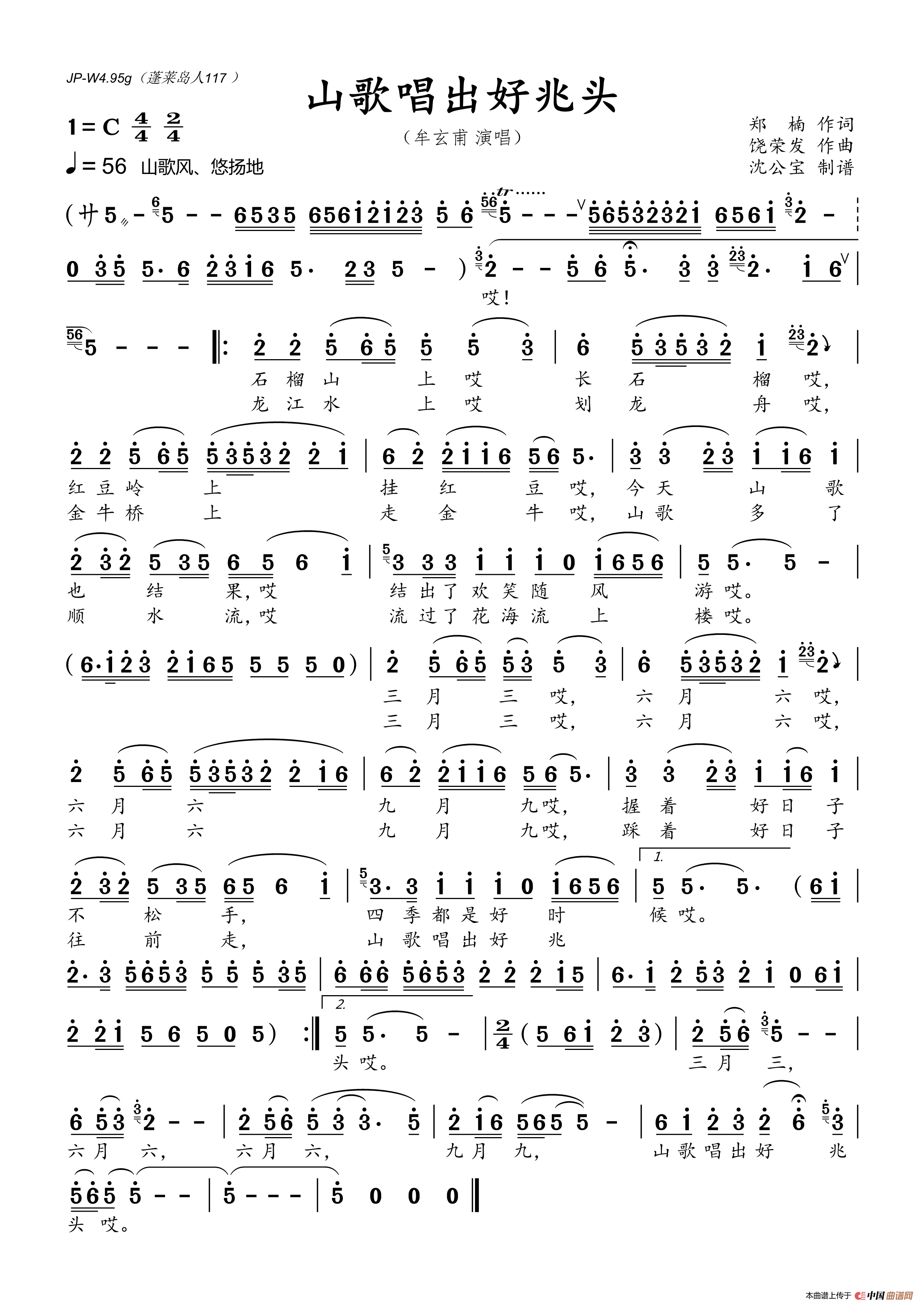 山歌唱出好兆头相关五线谱