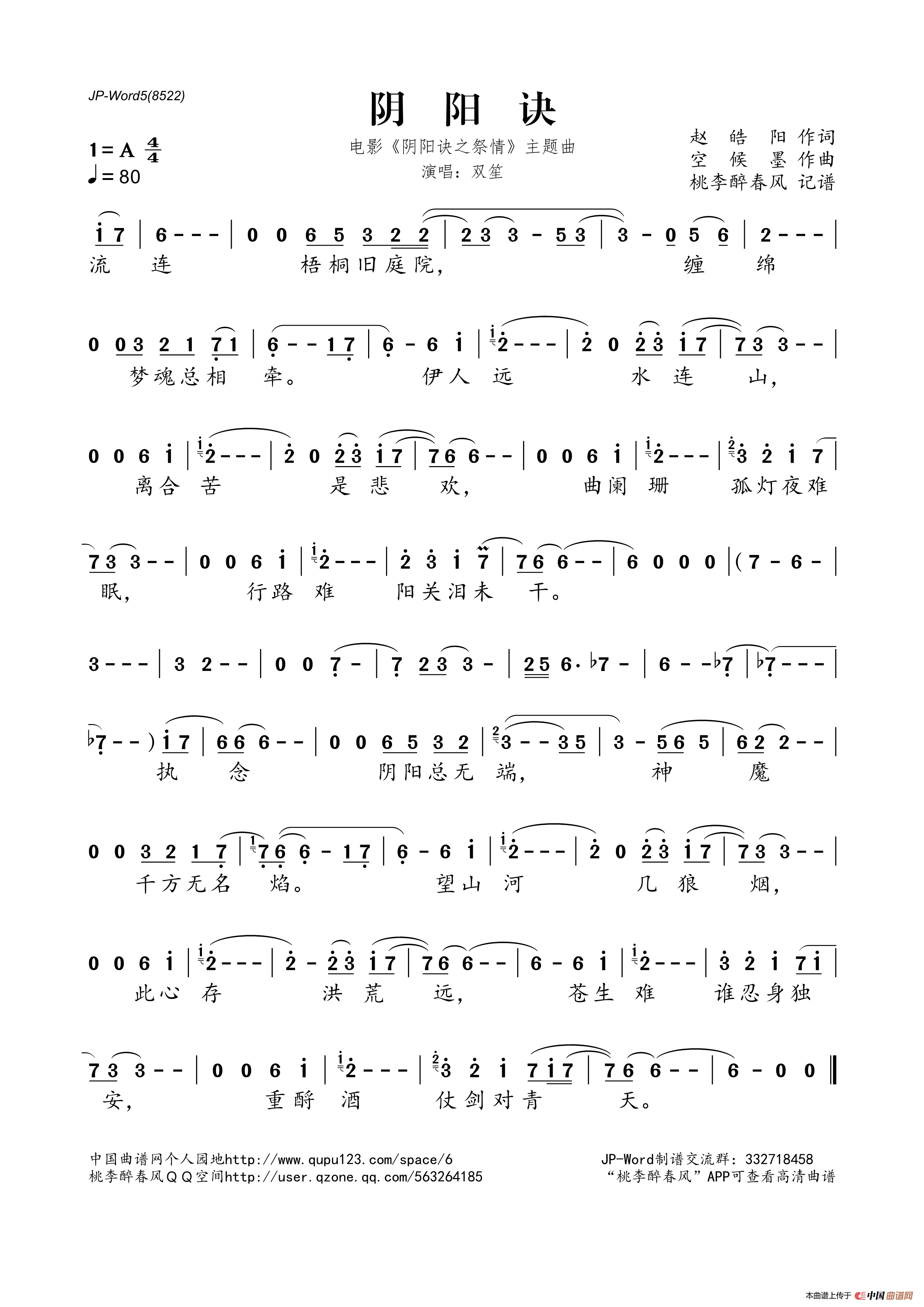 阴阳诀(电影《阴阳诀之祭情》主题曲)相关五线谱