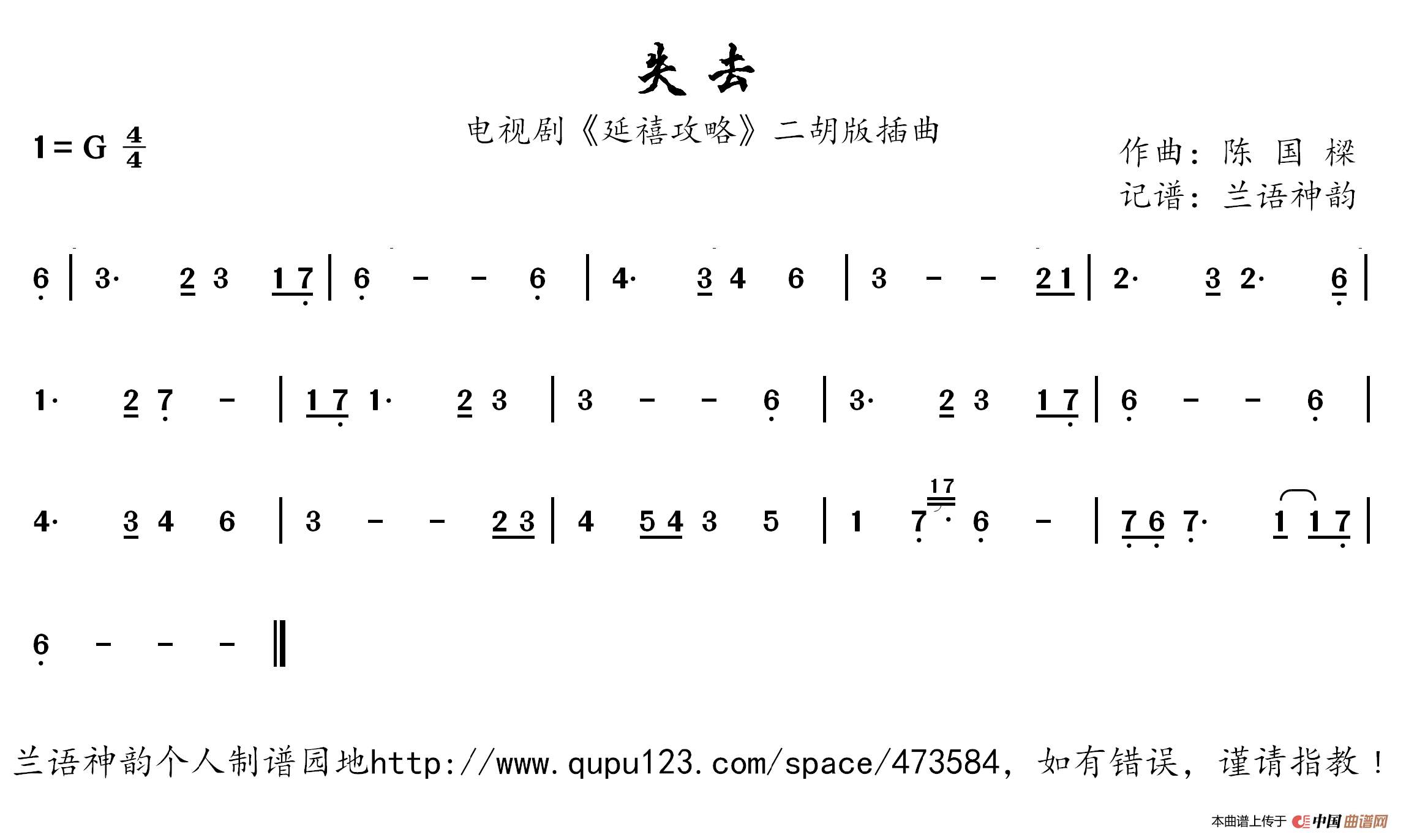 失去(电视剧《延禧攻略》二胡版插曲)相关五线谱
