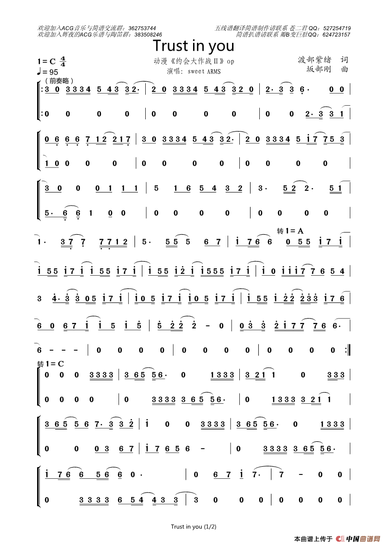 [日]trust in you(动画《约会大作战Ⅱ》片头曲)相关五线谱