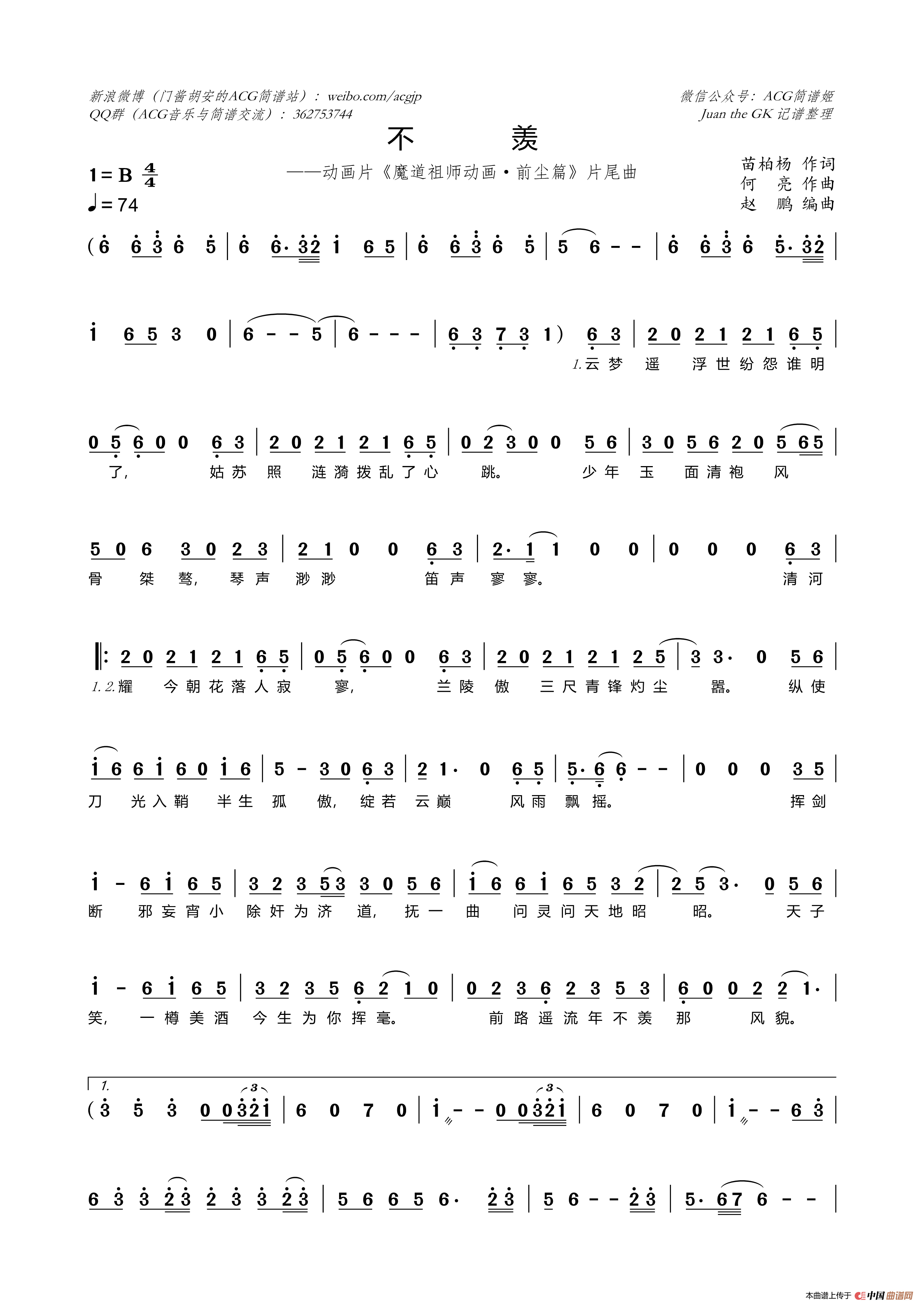 不羡(《魔道祖师动画·前尘篇》片尾曲)相关五线谱