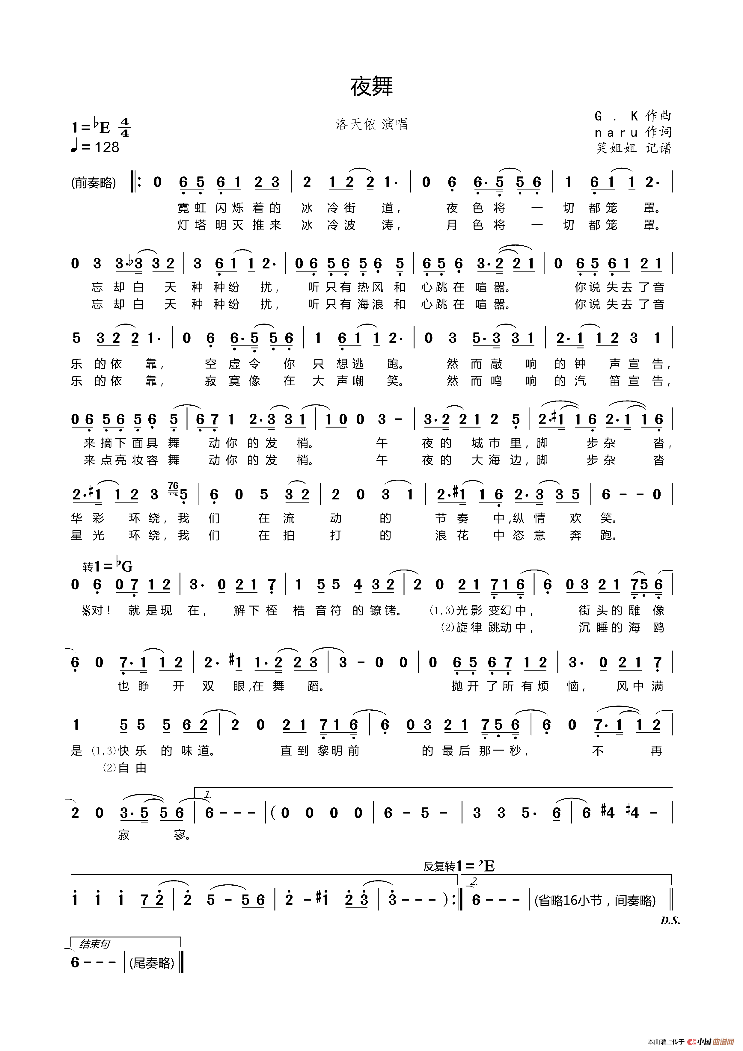 夜舞相关五线谱