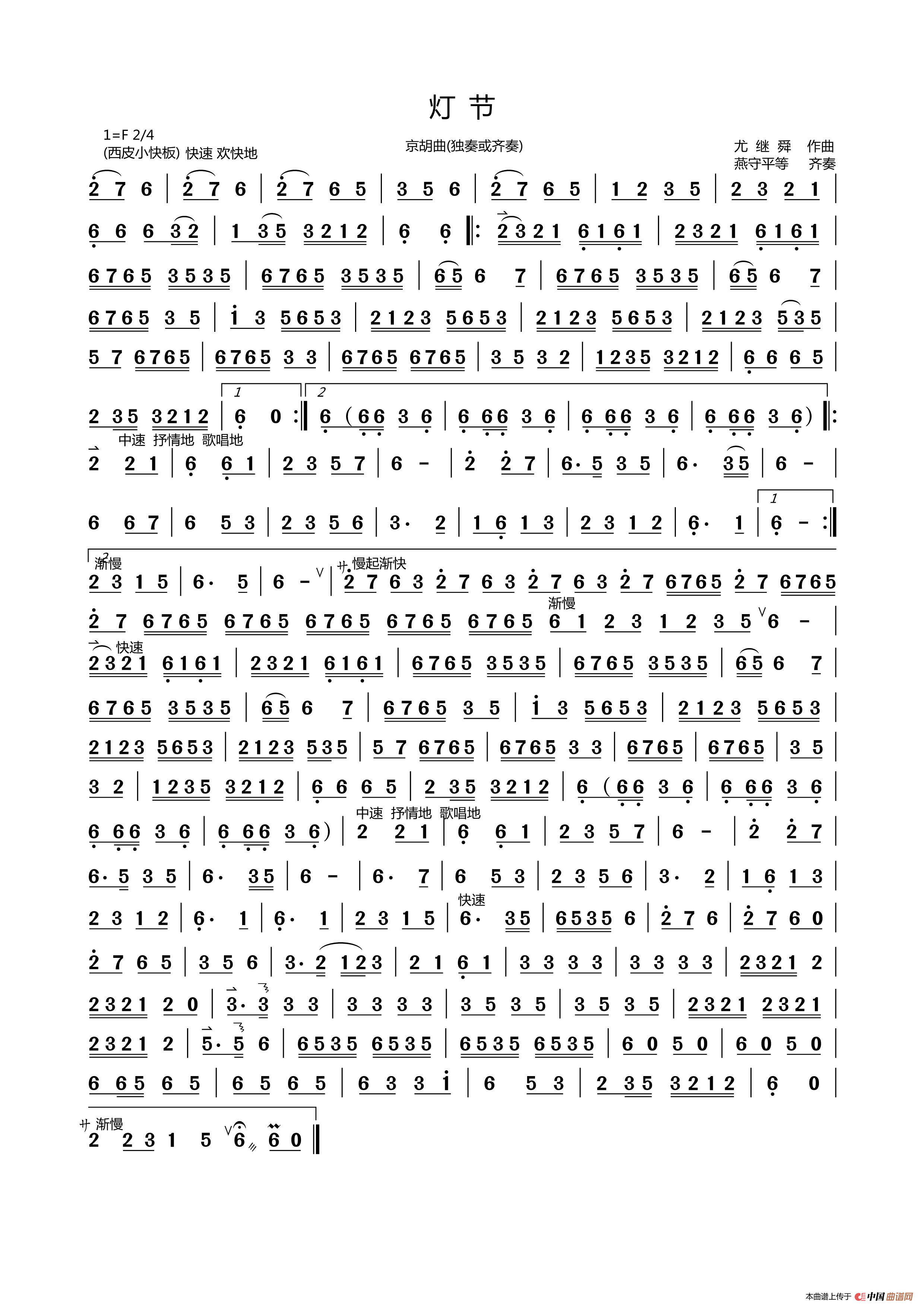 灯节(京胡曲 独奏或齐奏)
