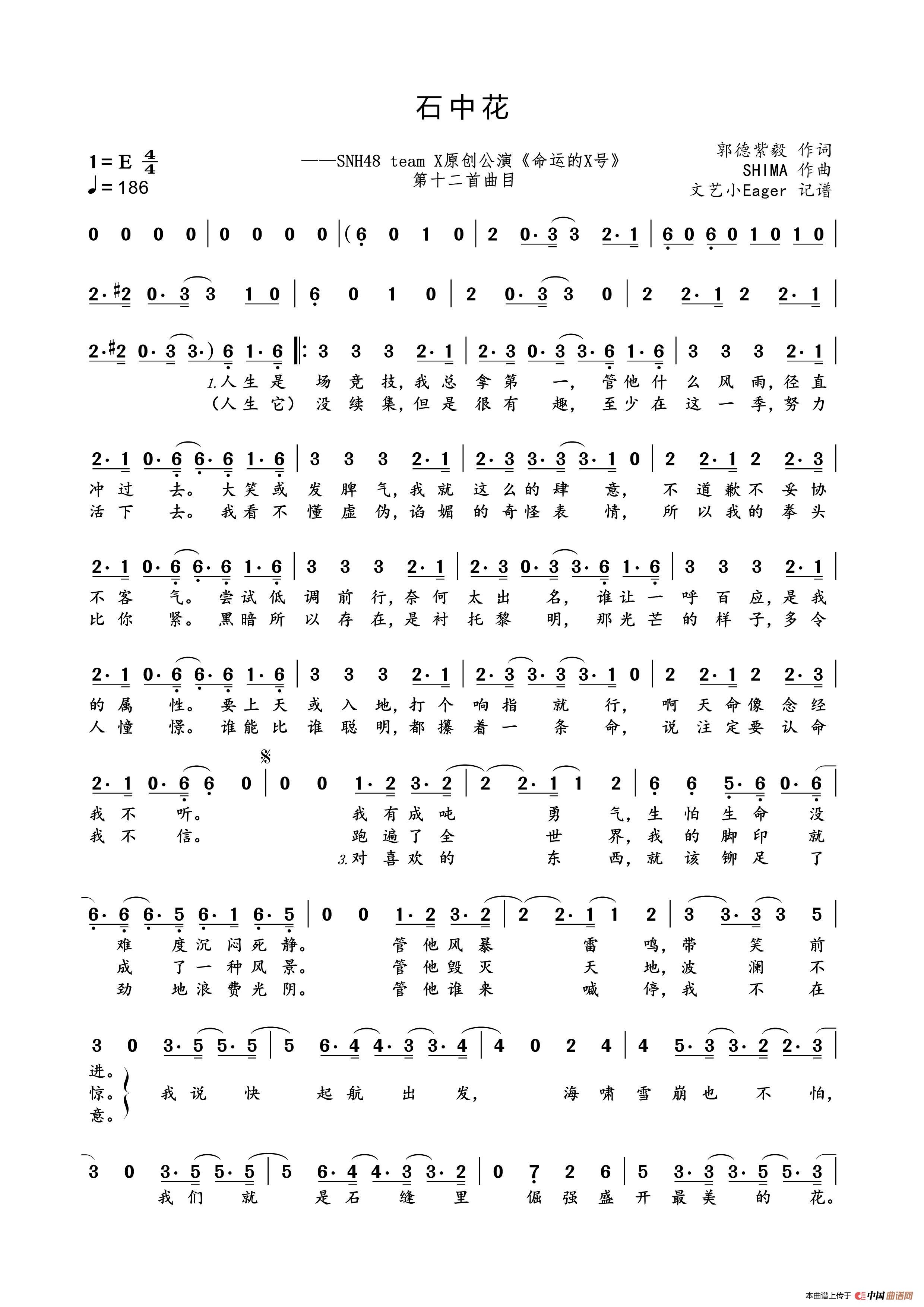 石中花相关五线谱