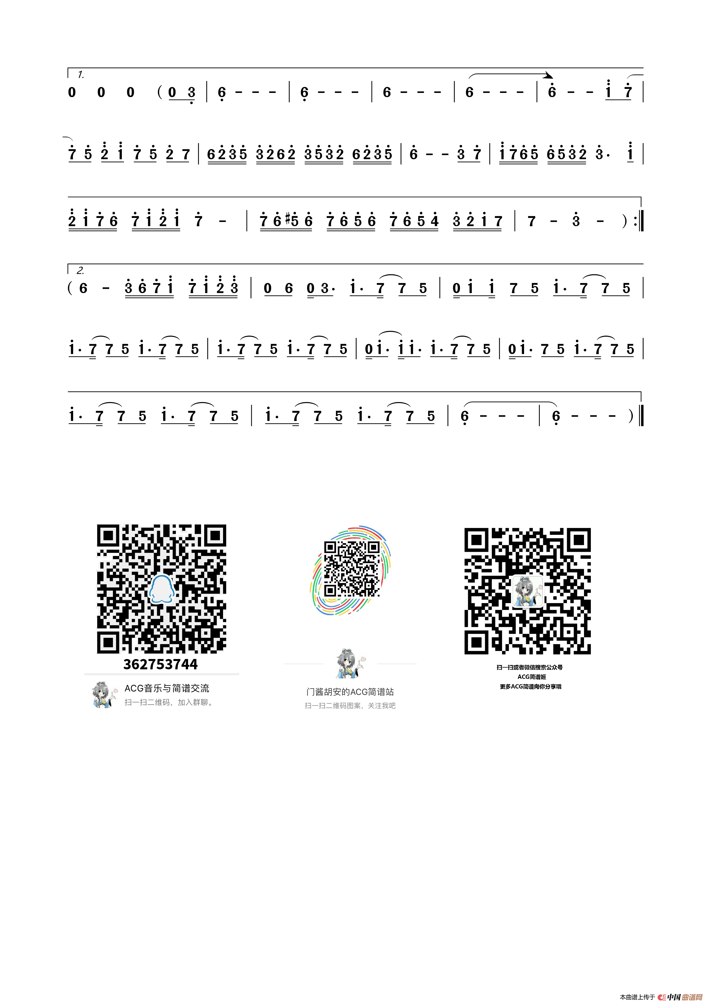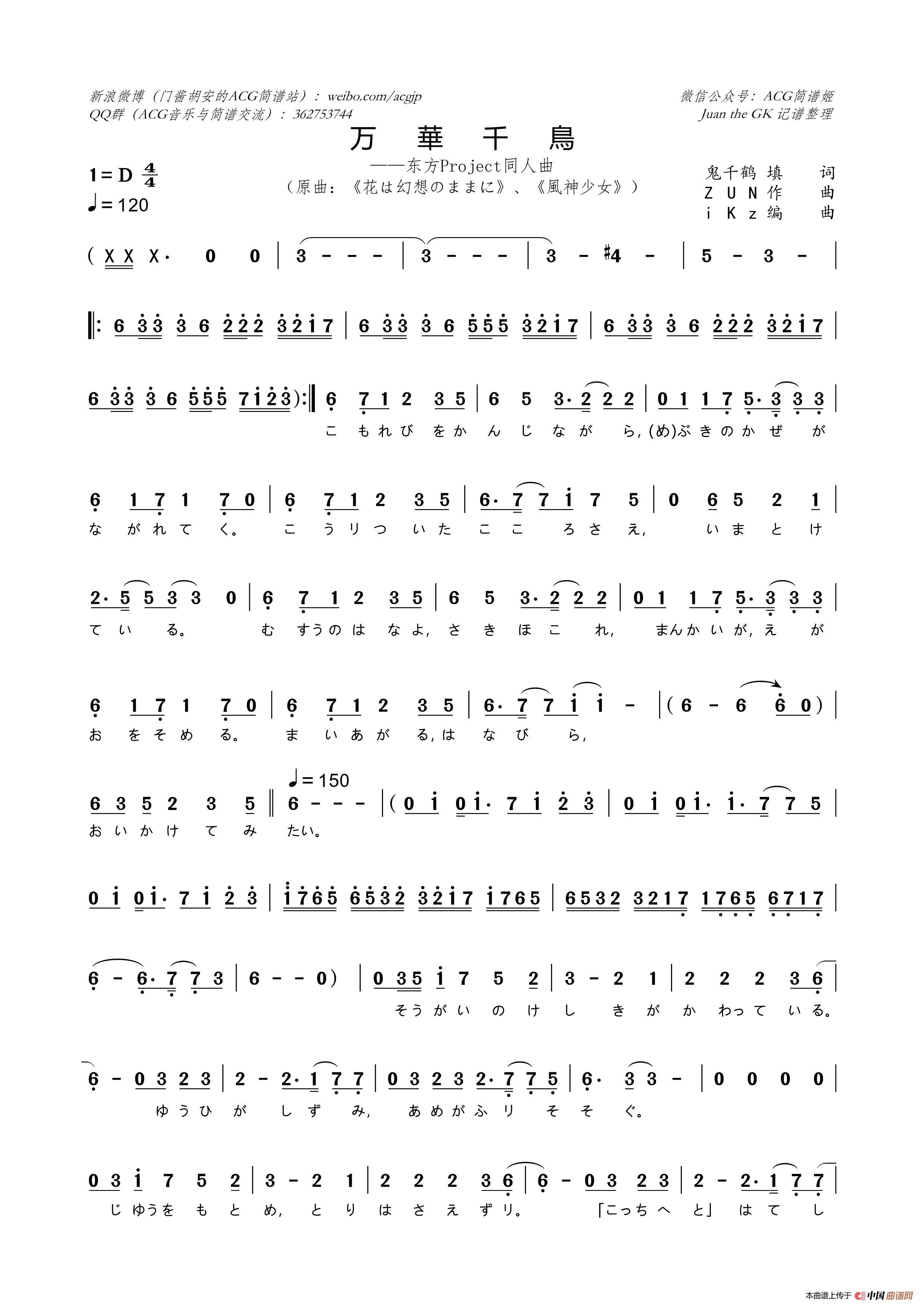 [日]万华千鸟(东方Project同人曲目)相关五线谱