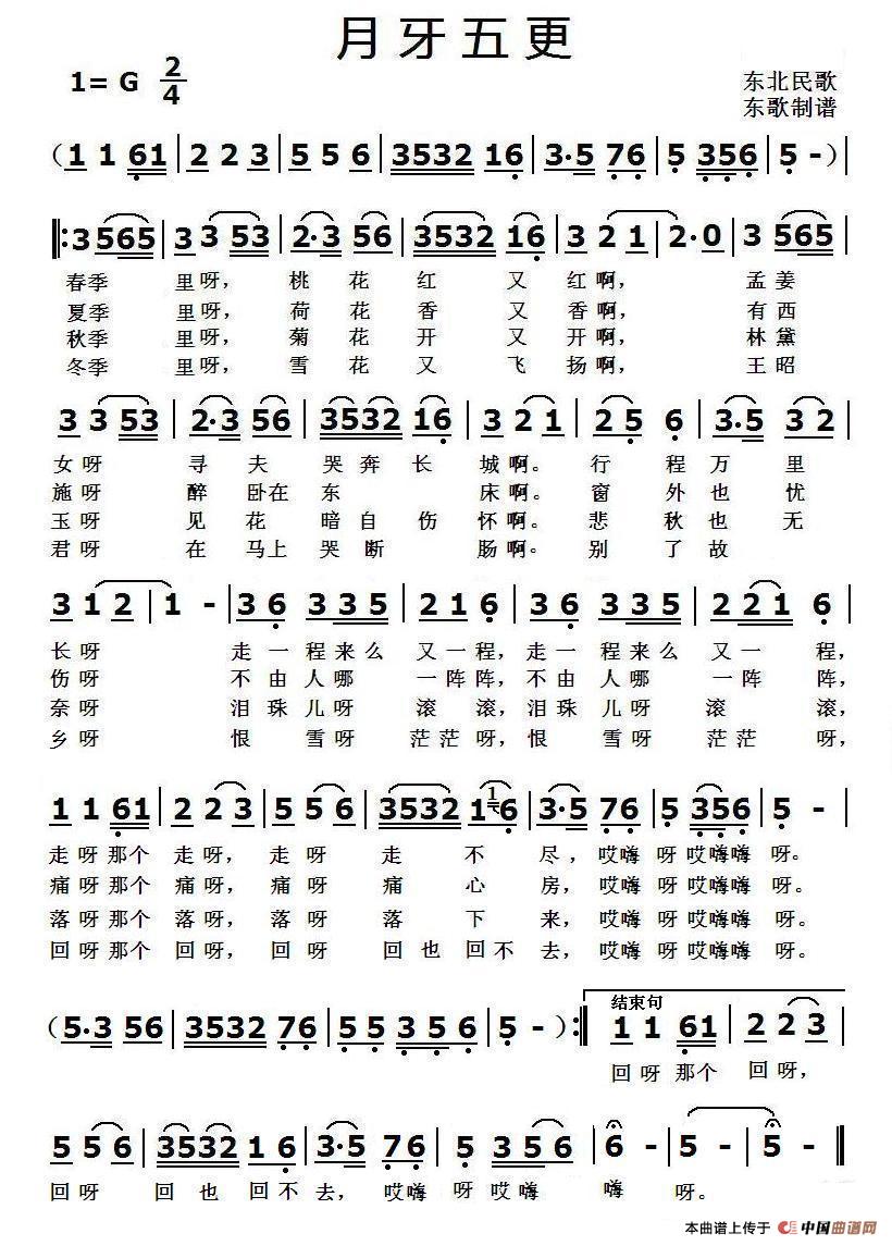 月牙五更(东北民歌)相关五线谱
