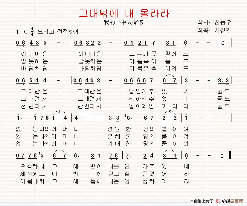[朝鲜]그대밖에 내 몰라라(我的心中只有您)相关五线谱