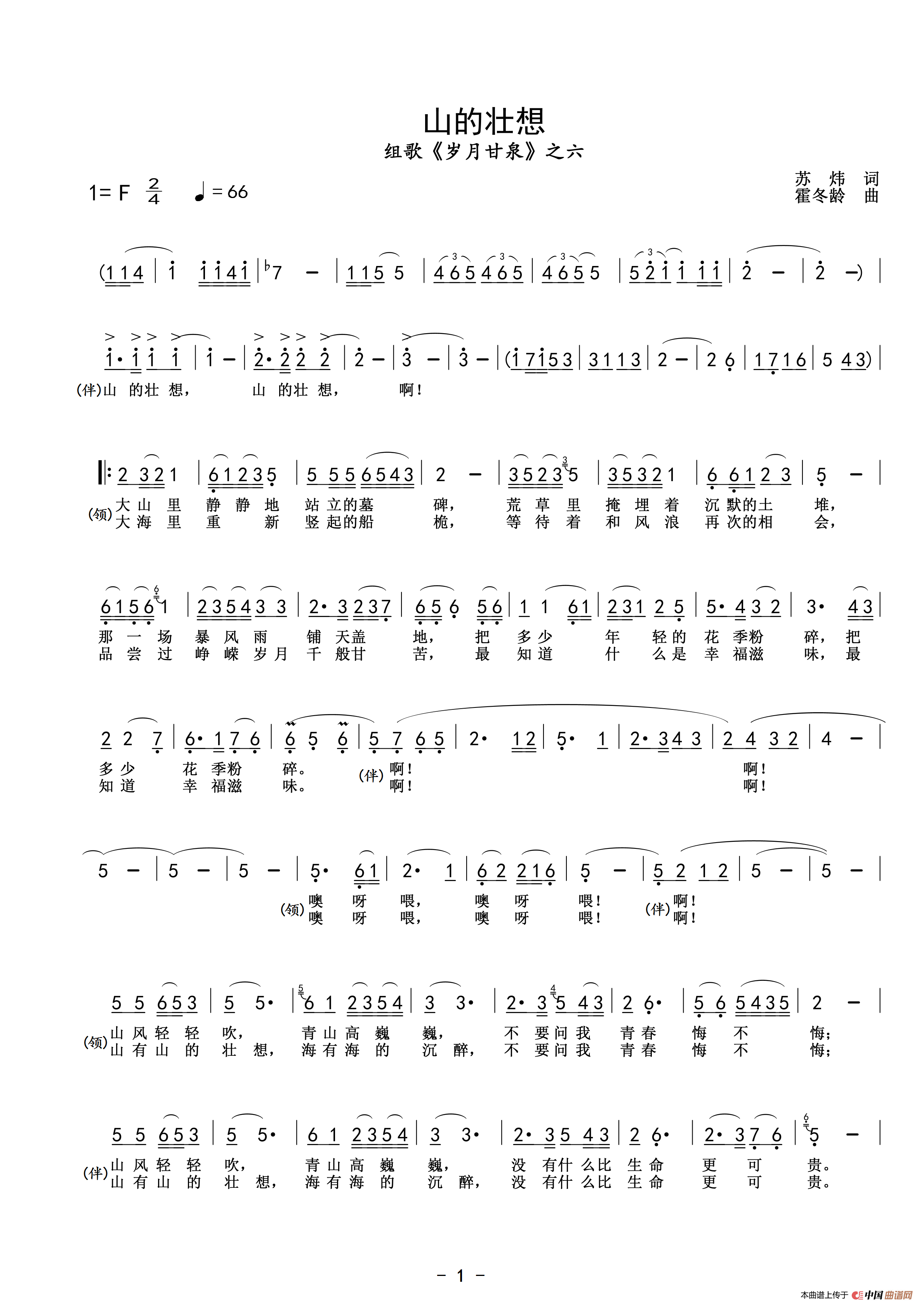 山的壮想(组歌《岁月甘泉》之六)相关五线谱