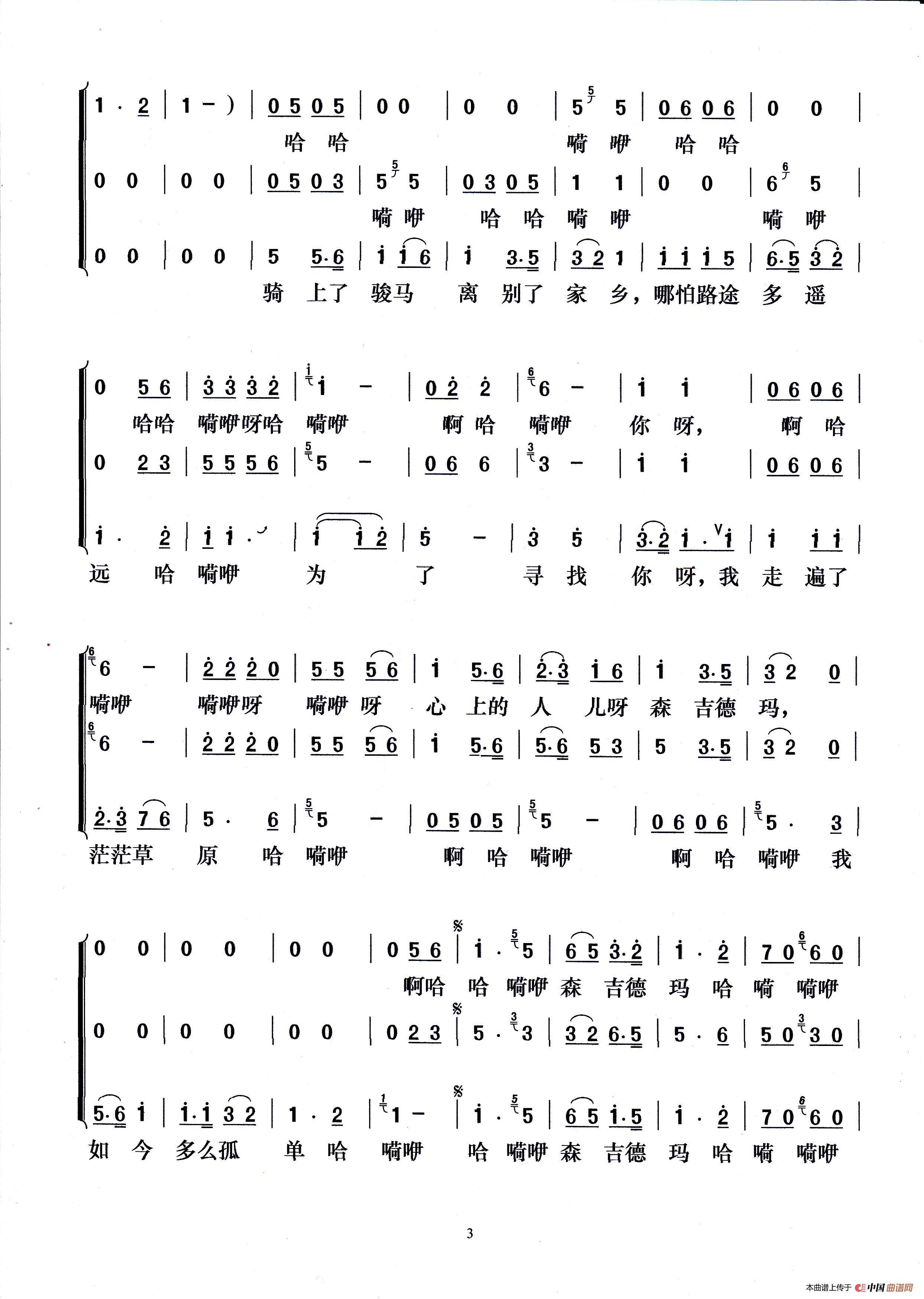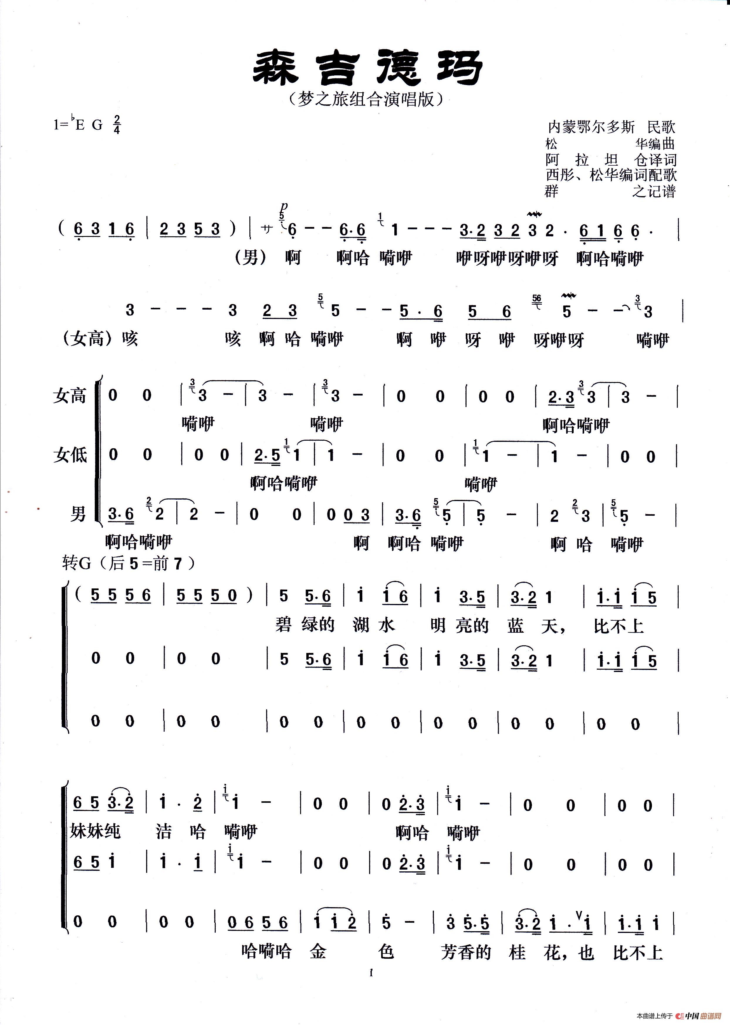 森吉德玛(梦之旅组合演唱版)相关五线谱