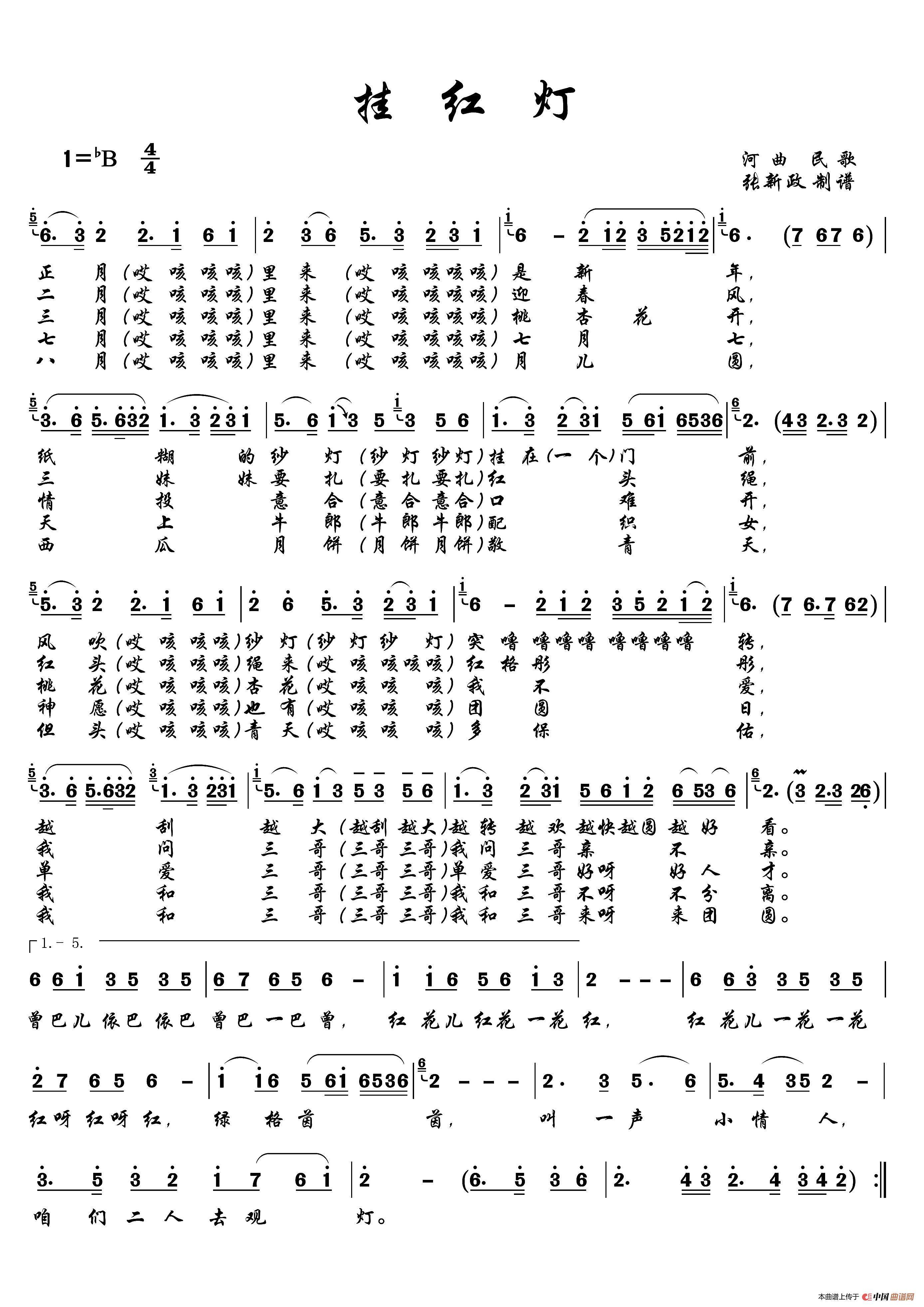 挂红灯(陕西民歌、线简谱混排版)