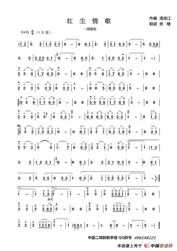 红尘情歌(二胡演奏谱)