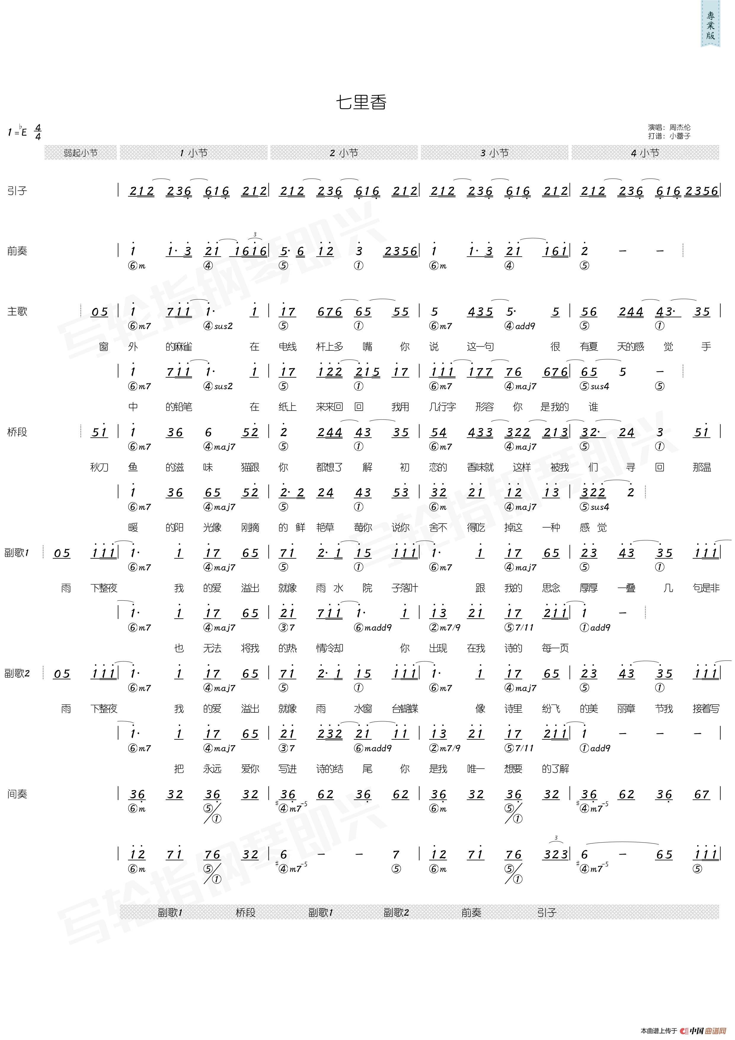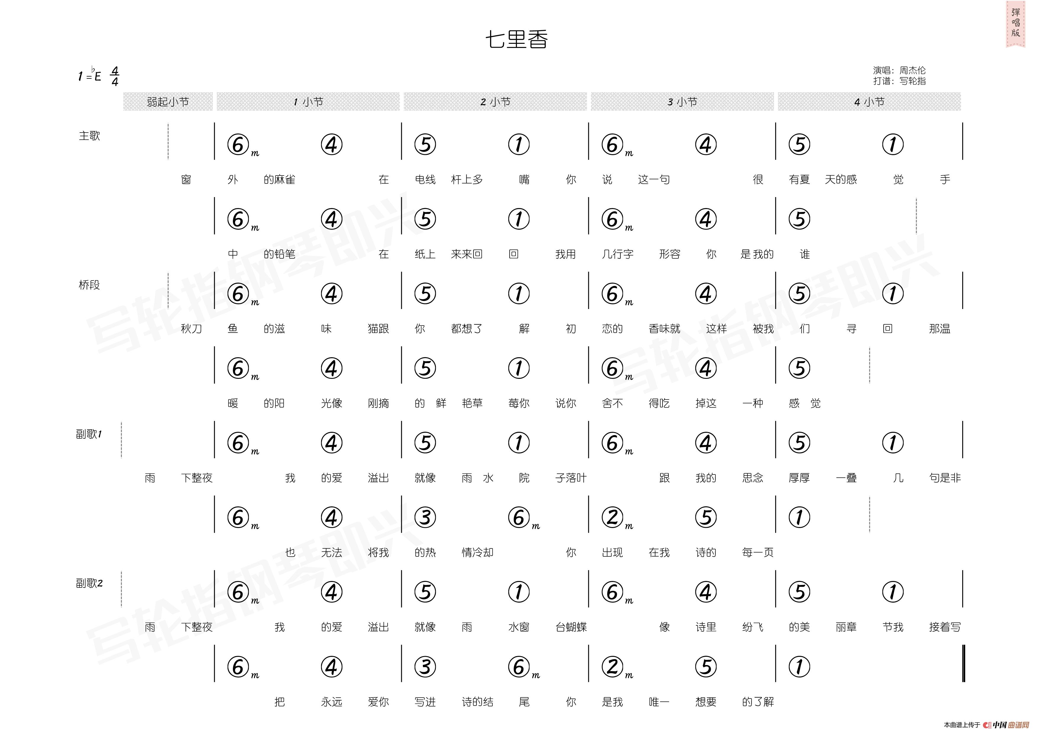 周杰伦曲谱推荐晴天 C 调转调(半音阶口琴)借口(编配乐谱)烟花易冷(小提琴五线谱)东风破最长的电影(鸠玖编配版)好久不见(周杰伦演唱版·)周杰伦 星晴 吉他谱(无限延音编配)千里之外古筝独奏:菊花台东风破等你下课(2018中国好声音版)浪漫手机(编配版本二)世界末日(乐队总谱)听见下雨的声音给我一首歌的时间(拇指琴卡林巴琴演奏谱)千里之外告白气球(吉他六线谱、音艺编配版)龙卷风(3个版本)蒲公英的约定(编配乐谱)甜甜的(编配乐谱)