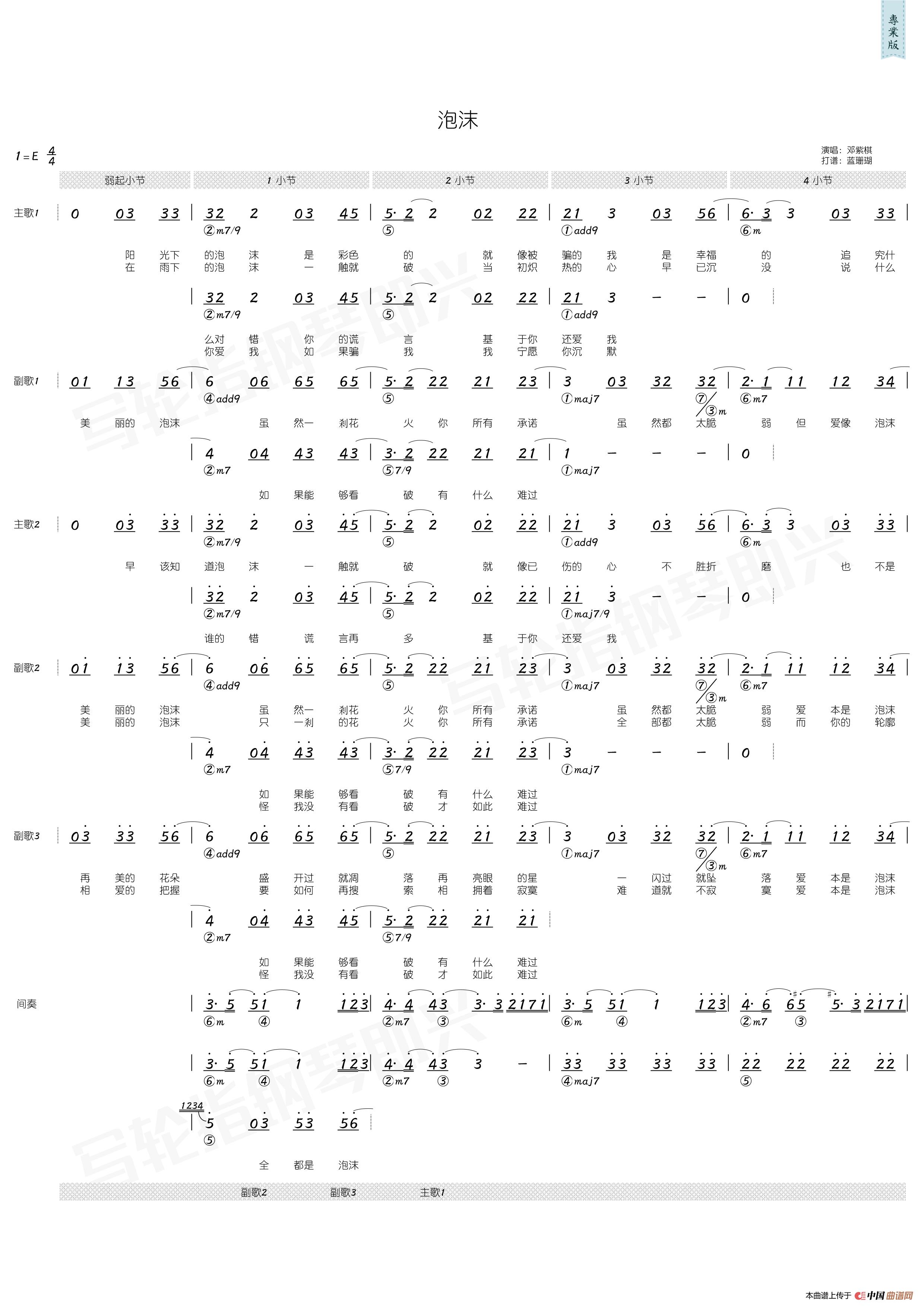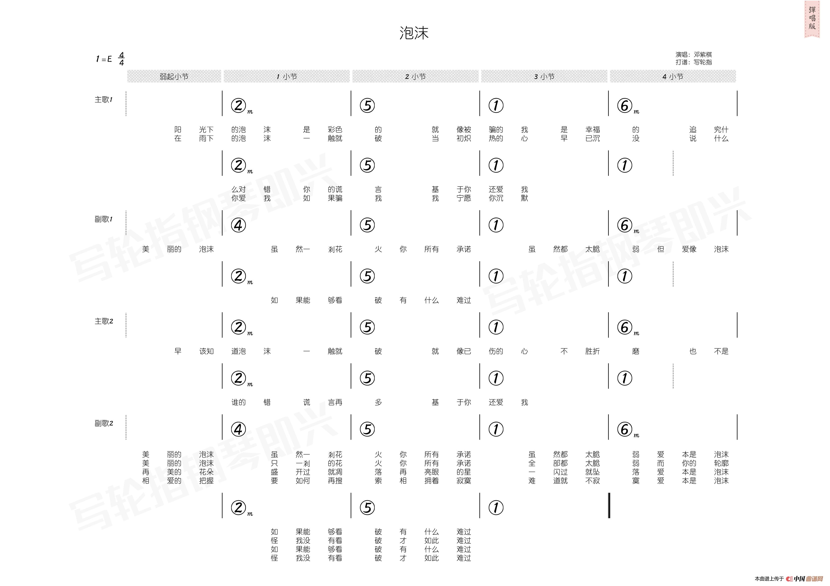 邓紫棋曲谱推荐泡沫(邓紫棋词 邓紫棋曲)画(简和谱)邓紫棋 光年之外小提琴谱(光年之外 小提琴五线谱)光年之外光年之外(简和谱)奇迹(邓紫棋演唱)泡沫(尤克里里谱)光年之外烟熏妆再见邓紫棋 来自天堂的魔鬼 吉他谱(无限延音编配)泡沫光年之外(拇指琴卡林巴琴和弦谱)泡沫(六孔陶笛谱)多远都要在一起画(邓紫棋 演唱)画(男声四重唱)盲点偶尔偶尔(钢琴伴奏谱)