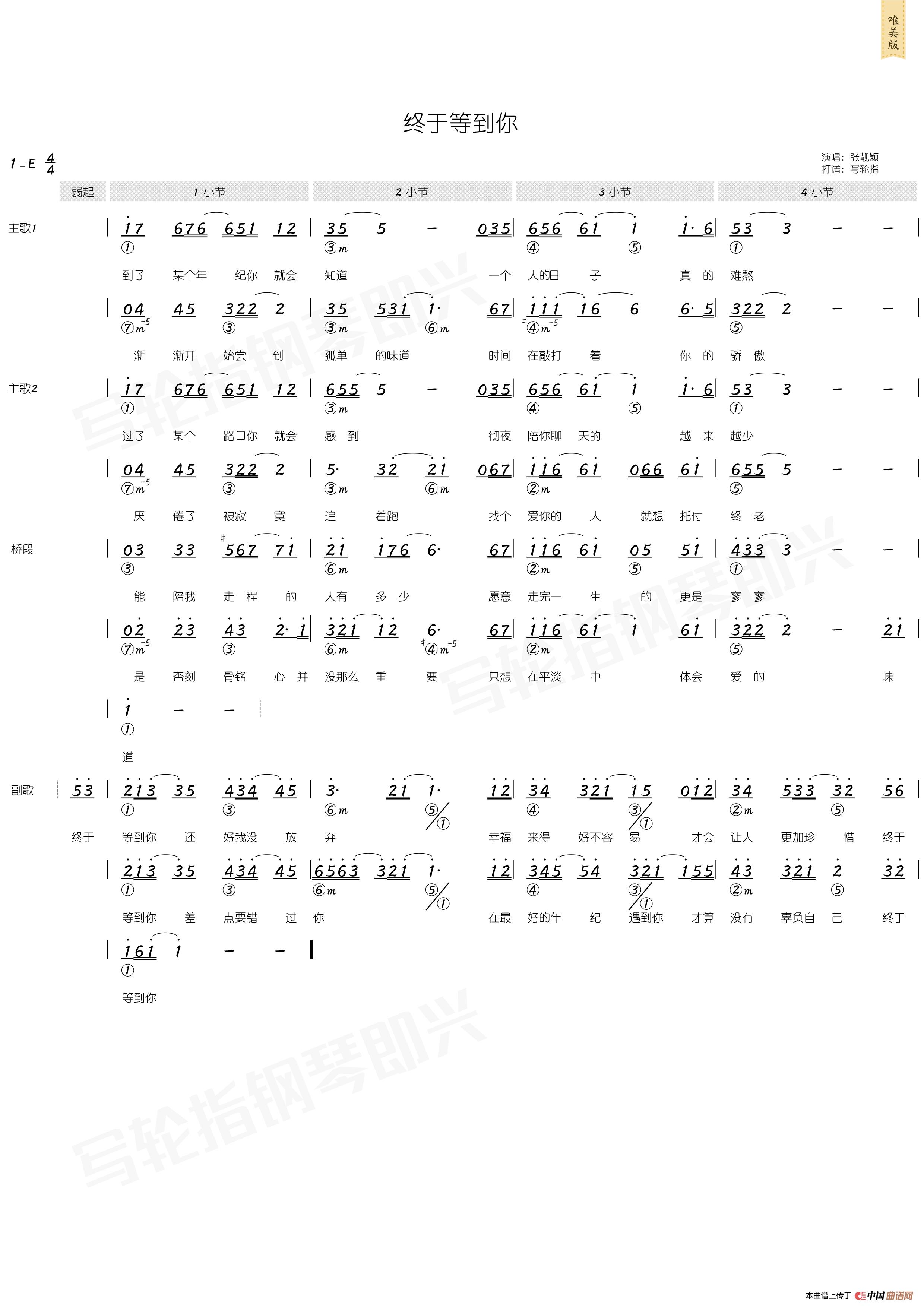 董冬冬曲谱推荐一次就好(电影《夏洛特烦恼》插曲)(陶笛)千秋(电视剧《武媚娘传奇》主题曲)誓如当初(电视剧《人民的名义》插曲)一定要幸福终于等到你(电视剧《咱们结婚吧》片尾主题曲)繁星璀璨的天空(混声合唱)终于等到你错过(陈曦词 董冬冬曲)莫失莫忘(电视剧《锦绣南歌》人物主题曲)但愿人长久(苏轼词 董冬冬曲)荣耀(陈曦词 董冬冬曲)咖喱咖喱(电视剧《欢乐颂2》片头曲)你的幸福是我们最好的礼物(电视剧《金太狼的幸福生活》主题曲)终于等到你我们彼此错过的年华(电视剧《妈妈的花样年华》片尾歌)山水间的家一次就好Say Yes(陈曦词 董冬冬曲、吉他弹唱谱)一念之间(男女声二重唱)时间都去哪儿了(吉他六线谱)