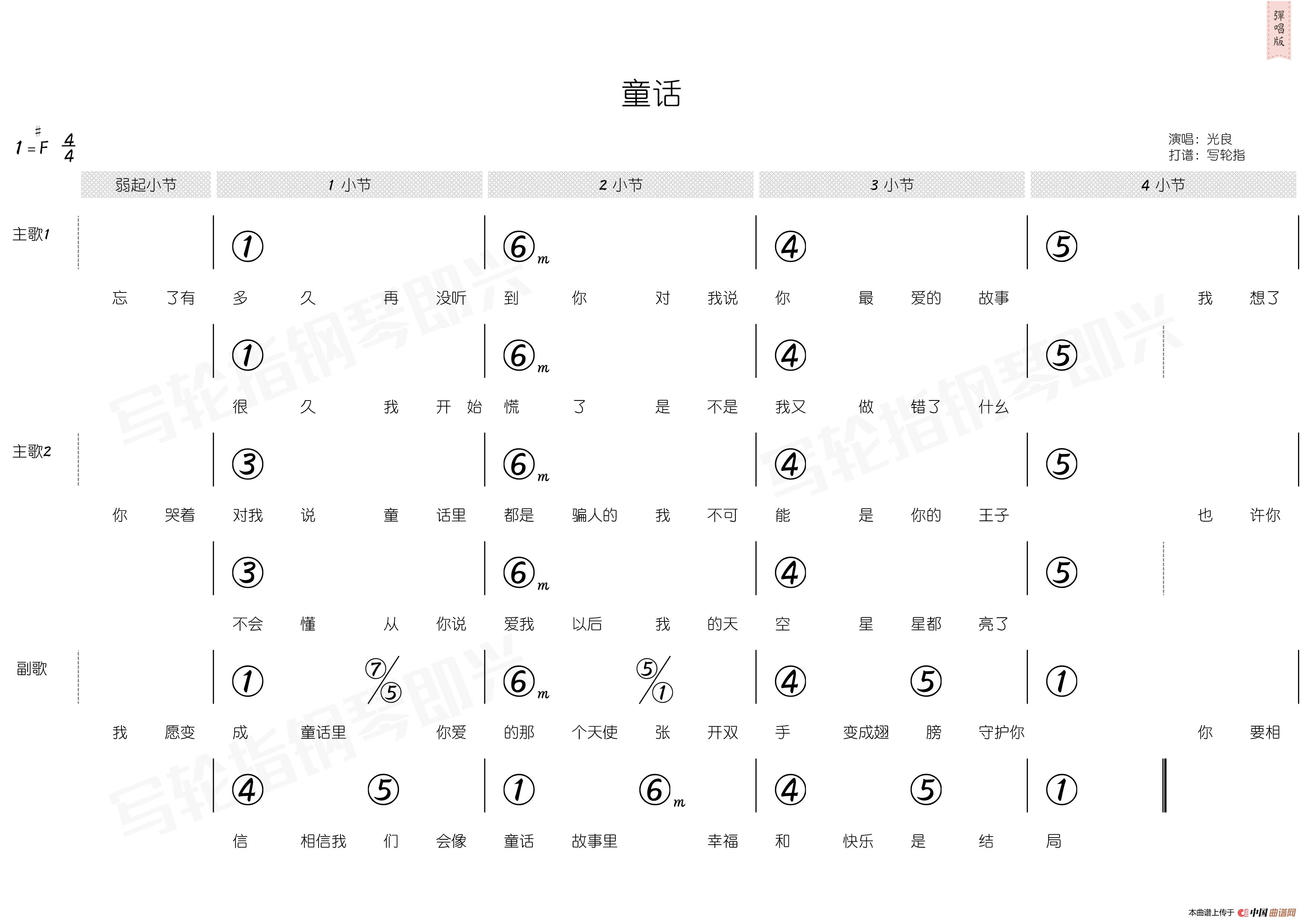 光良曲谱推荐第一次(编配乐谱)一点光一点亮都是你(夏江编配版)不会分离(编配乐谱)约定(编配乐谱)天堂(光良演唱版)爱可以点亮整个世界都是你(简易版)我等你(瑞业词 光良曲)勇气(敬业词 光良曲)没你的日子勇气(瑞业词 光良曲、编配乐谱)回忆里的疯狂我等你(钢琴伴奏谱)不会分离勇气(4个版本)童话勇气(敬业词 光良曲)童话(《弹吧音教》制谱版)掌心