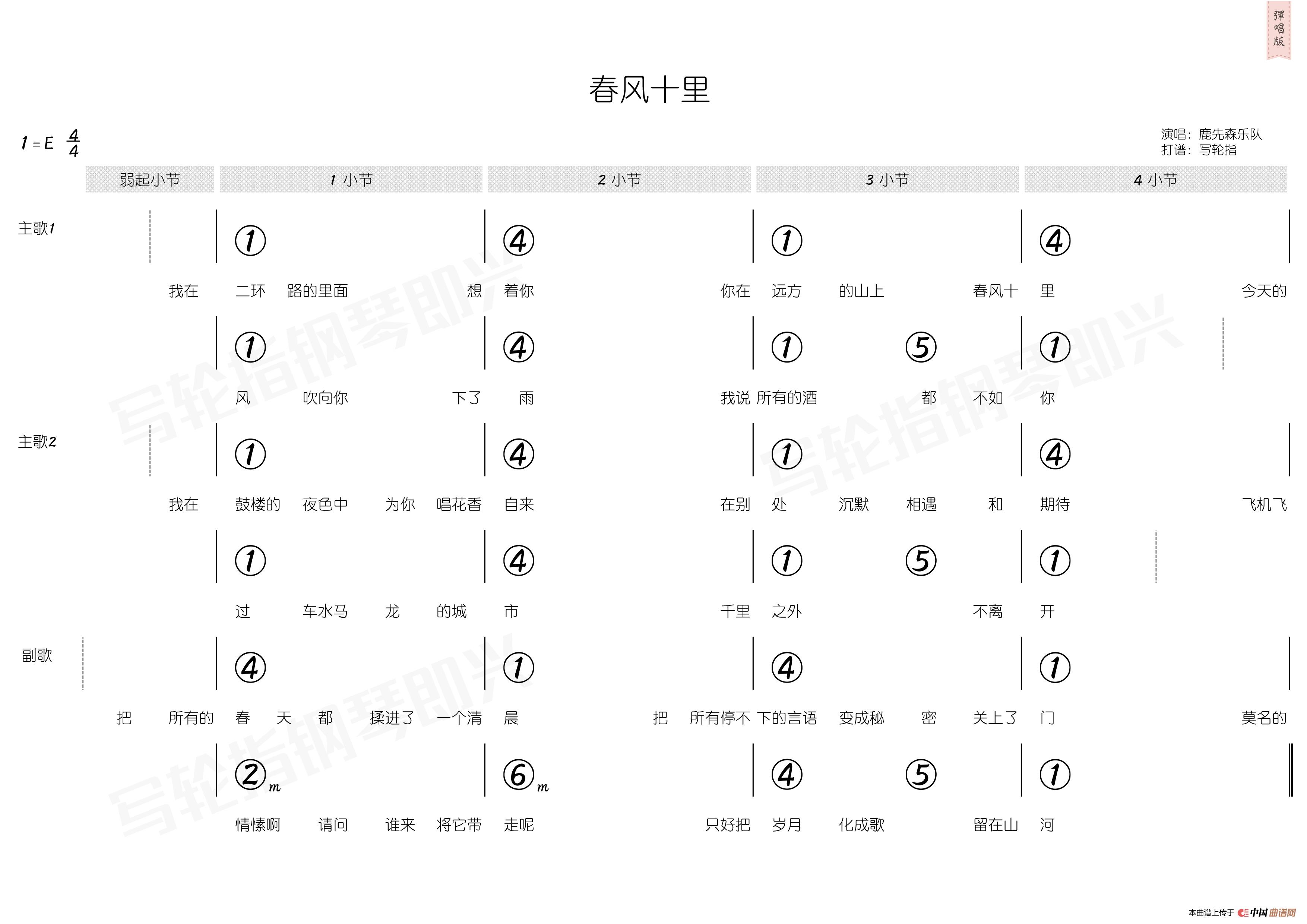 春风十里(高清弹唱六线谱E调)