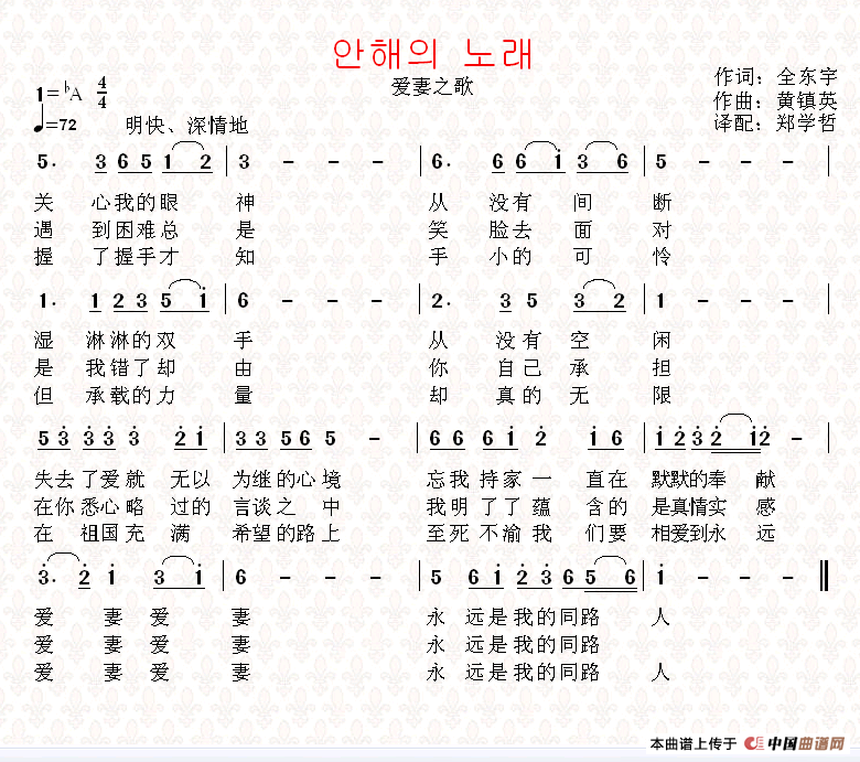 [朝鲜]안해의 노래(中文版)相关五线谱