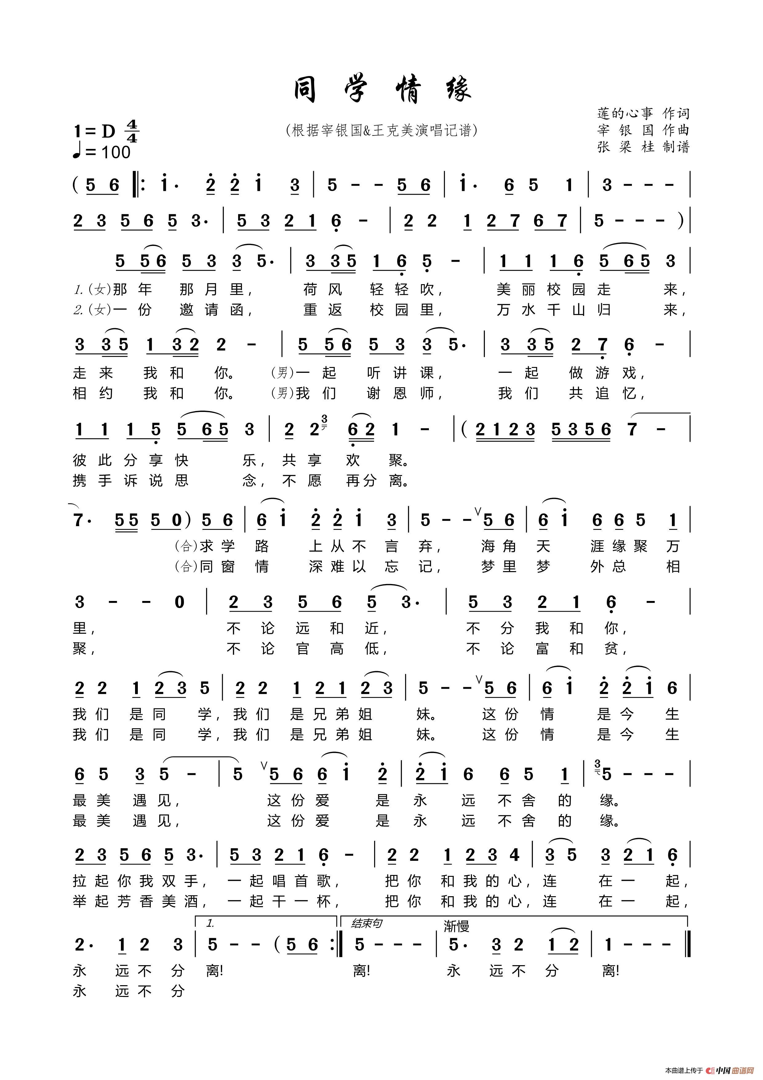 同学情缘相关五线谱