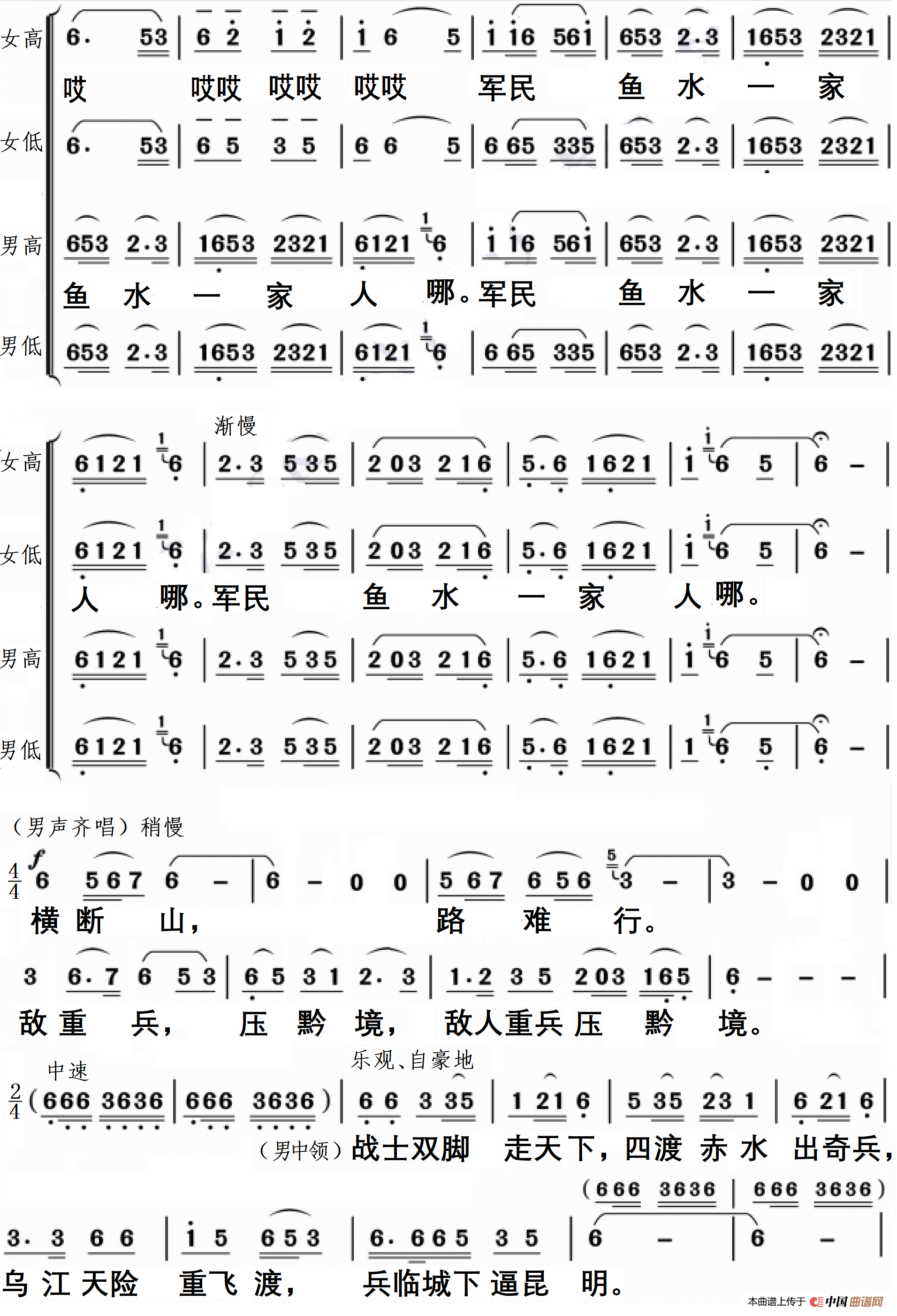 四渡赤水出奇兵(领唱与合唱)相关五线谱