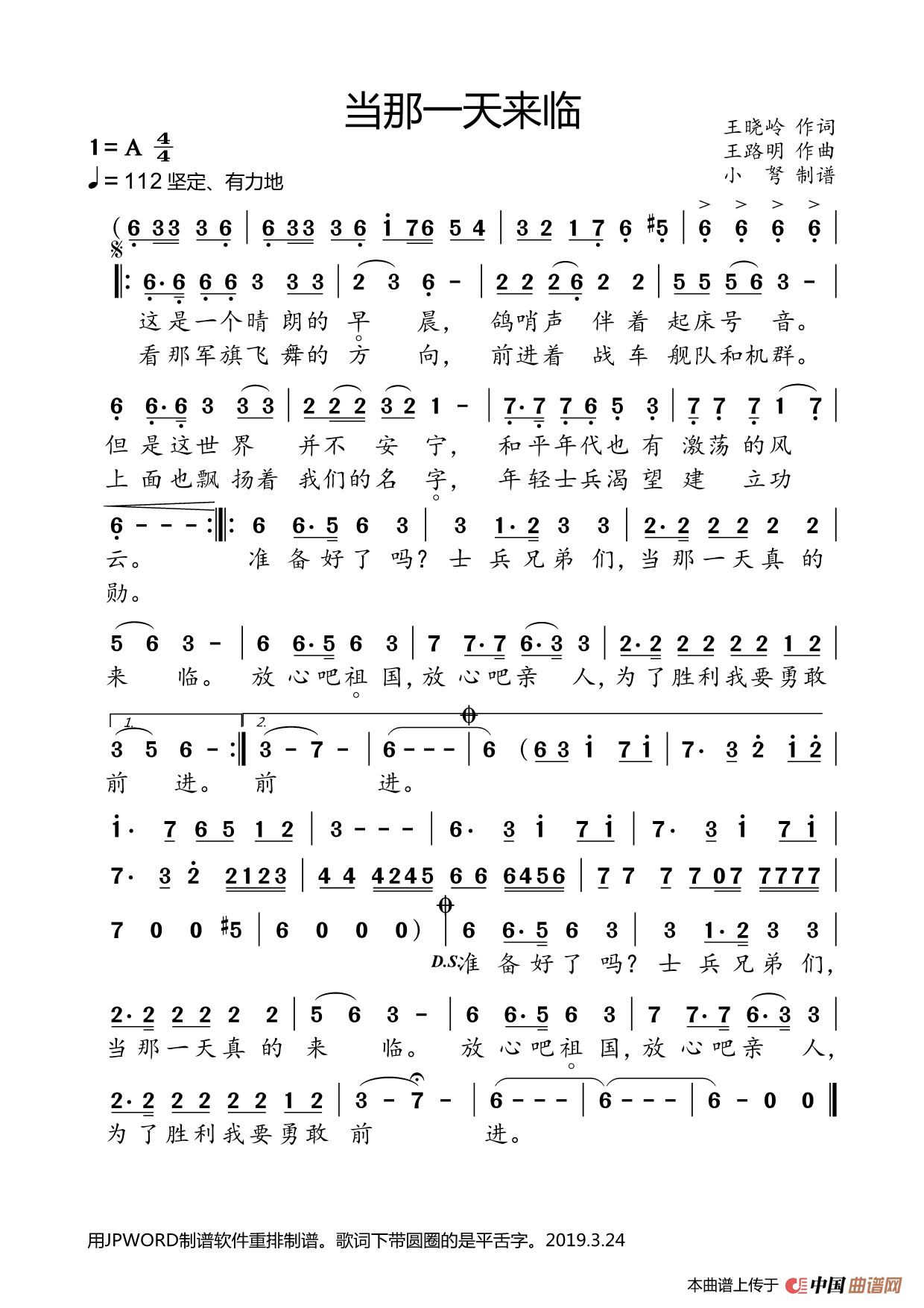 王路明曲谱推荐新一代革命军人最荣光康乃馨的爱和谐社会树新风欢乐海洋(李劲词 王路明曲)树梢上的芭蕾晚风中的妈妈(李劲词 王路明曲)国防动员歌草绿军被跟着你的目光上沙场春天中国春天 中国(李劲词 王路明曲·女声独唱版)砺剑深蓝如虎添翼(吴国平 李峰词 王路明曲)春天 中国(李劲词 王路明曲·男女声对唱版)军旅如花(李劲词 王路明曲)美丽时光(李劲词 王路明曲)军营天晴也下雨“同志们好”,“首长好”依恋(李劲词 王路明曲)康乃馨的爱